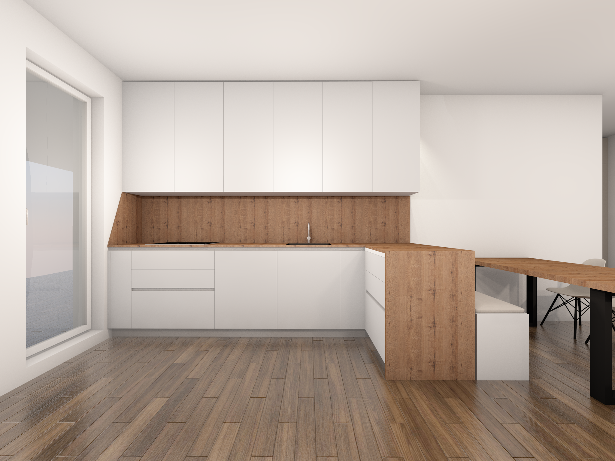 white glossy finish cabinets modern kitchen oak wood counter high detailed render moderate lightning add kitchen accessories keep original nodes keep original nodes do not add anything i didn t ask
