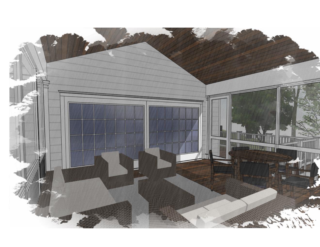 the back wall is a large sliding glass door traditional white trim with glass
