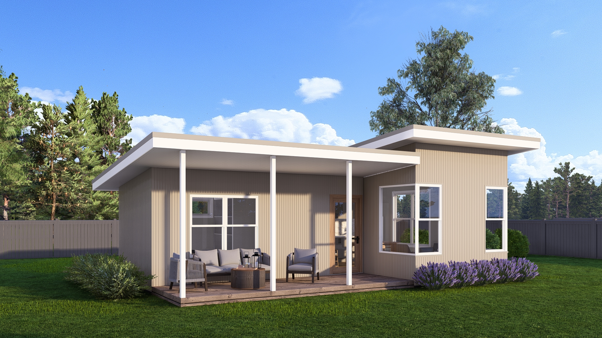 improve the textures the exterior cladding should v joint fiber cement cladding in beige color keep the colors from the original photo dont add any other elements