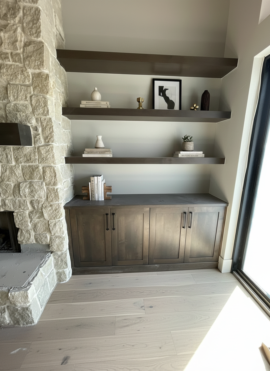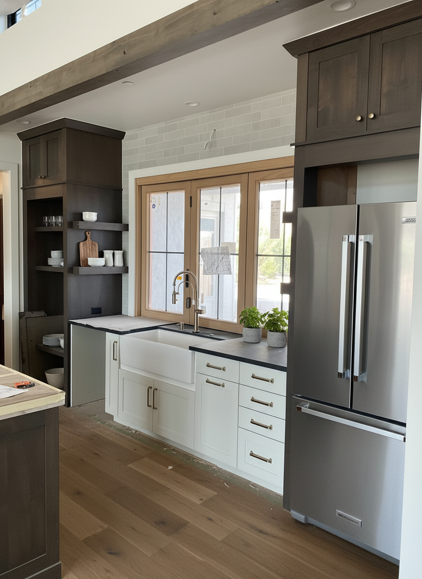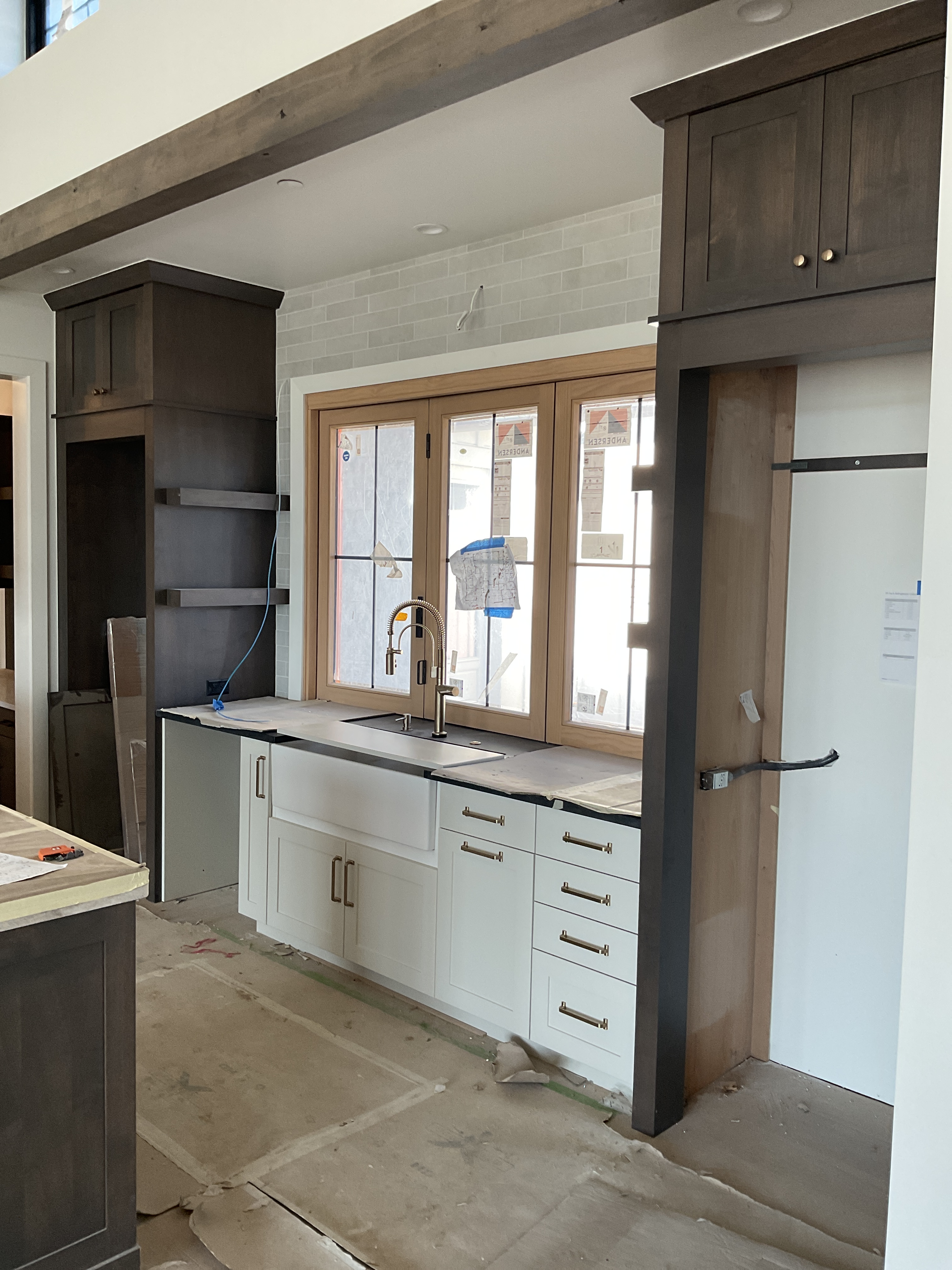 remove construction materials film from windows clean floor add appliances add flooring style the area