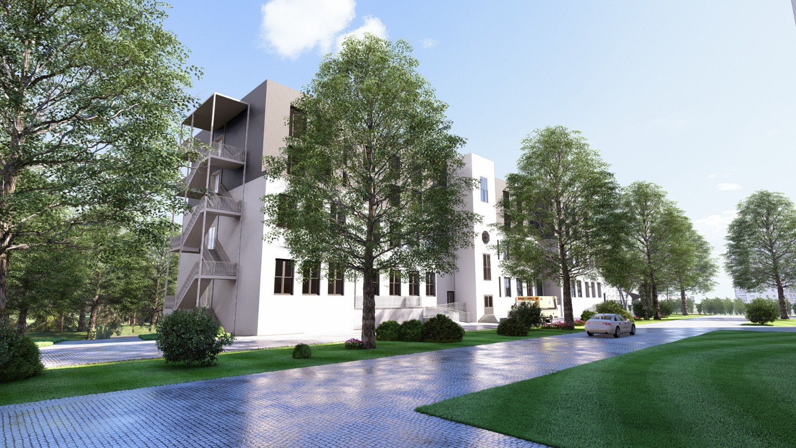 nicholas grimshaw exterior shot add interiors to windows add street lamps ad people silhouettes architecture