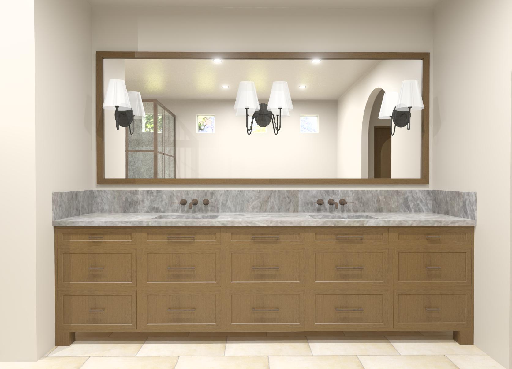 make this more photorealistic dont make it darker and dont change the color of the vanity dont change the color of the sountertop stone