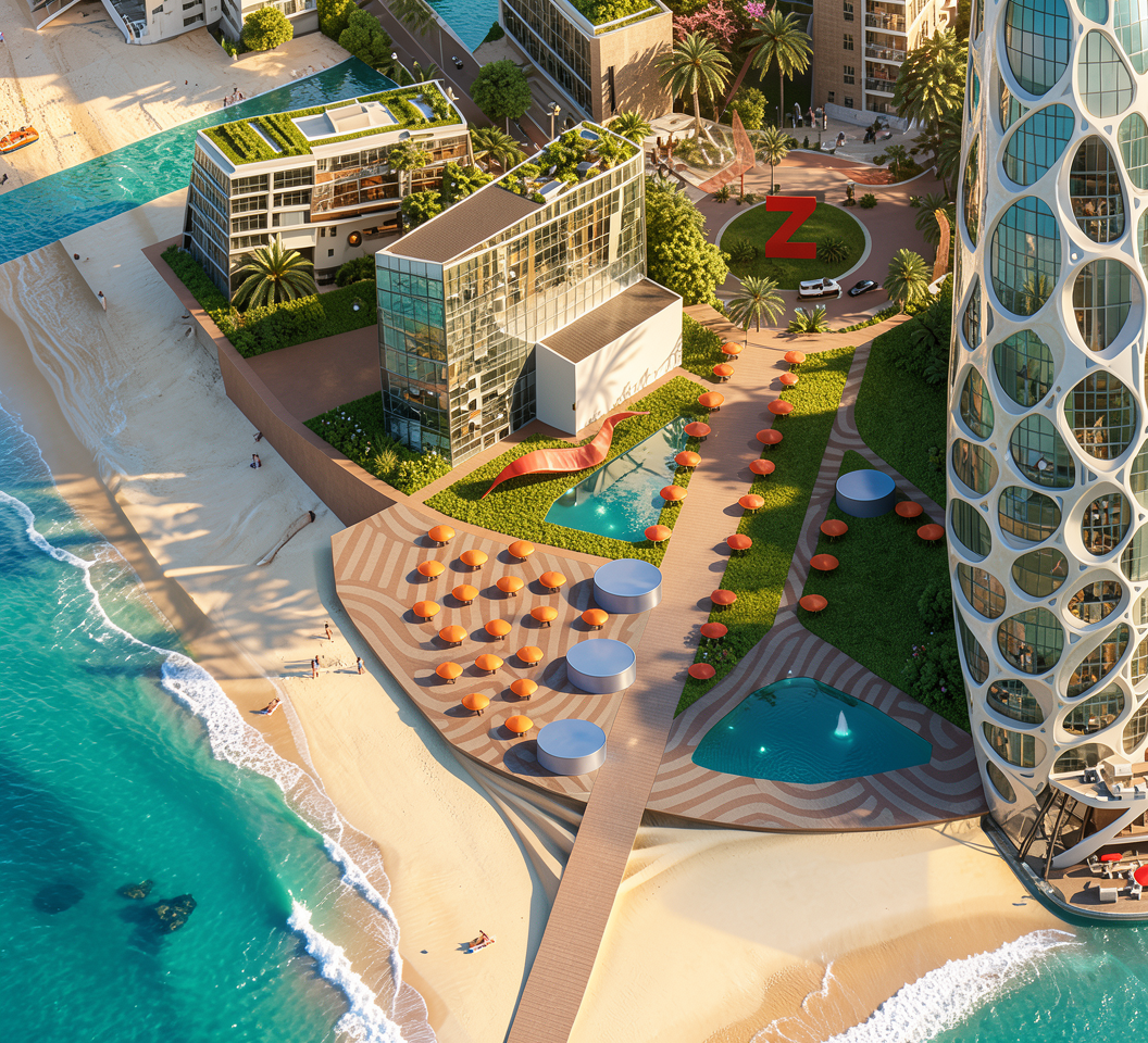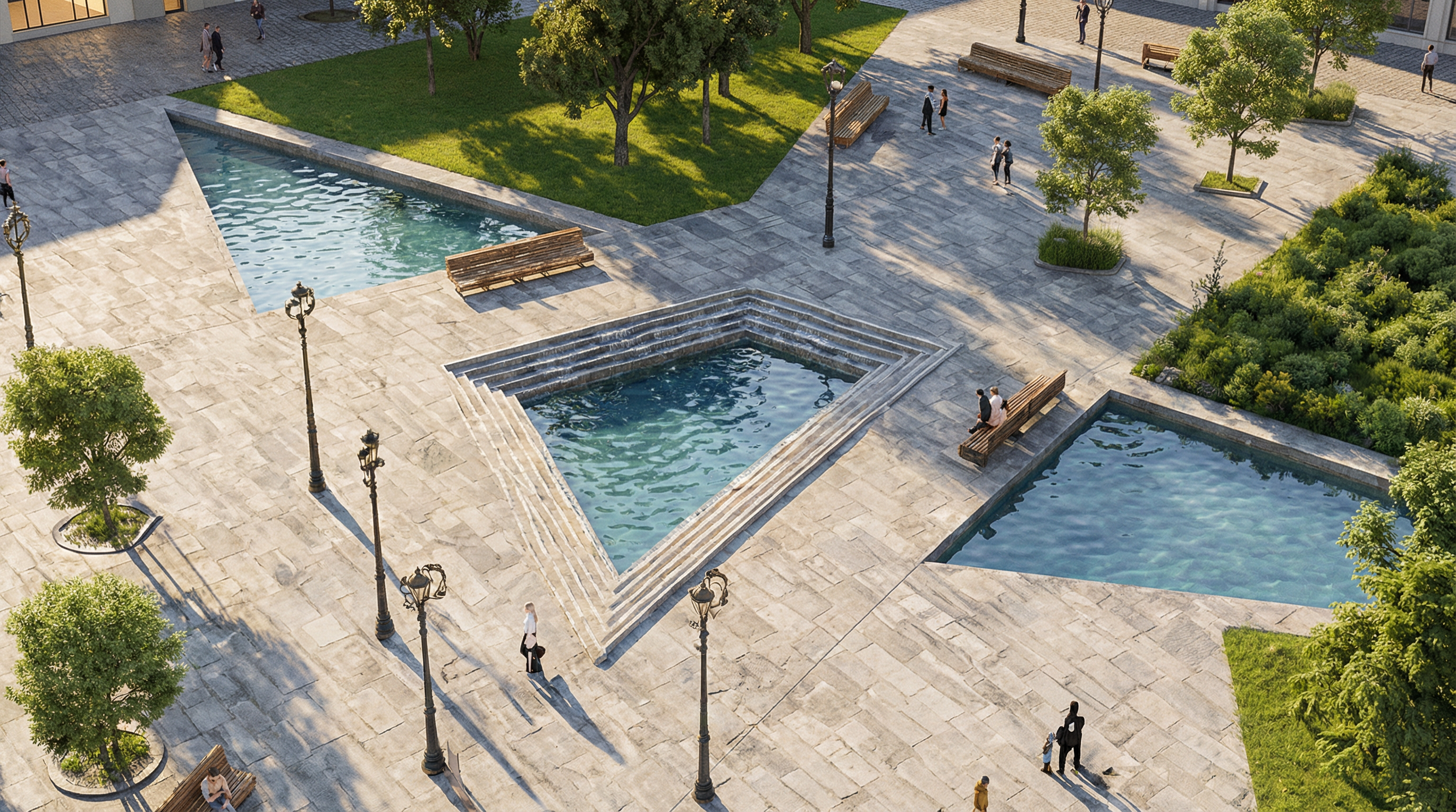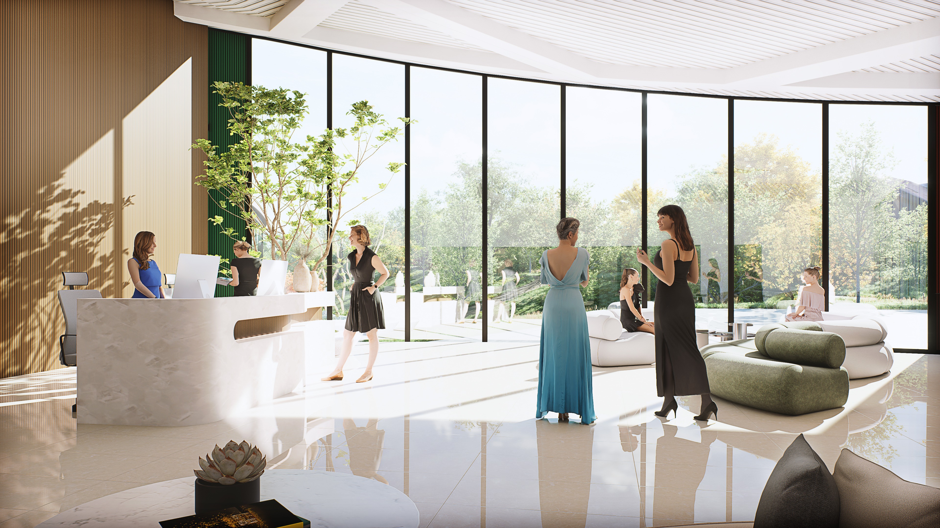 important preserve the existing geometry and the existing context exactly as provided preserve the existing windows do not add new windows do not modify alter reinterpret add remove scale or reshape any geometry do not change the site surroundings street layout neighboring buildings vegetation or context elements do not modify geometry scale proportions buildings road layout sidewalks or surrounding context in any way do not modify text soft sunny noon atmosphere diffused neutral natural daylight with subtle tones cinematic architectural mood weak interior lighting 4000k slight glowing from inside large glass surfaces with realistic reflections soft mirror effect environmental reflections of sky and surroundings important do not add new windows remove the people