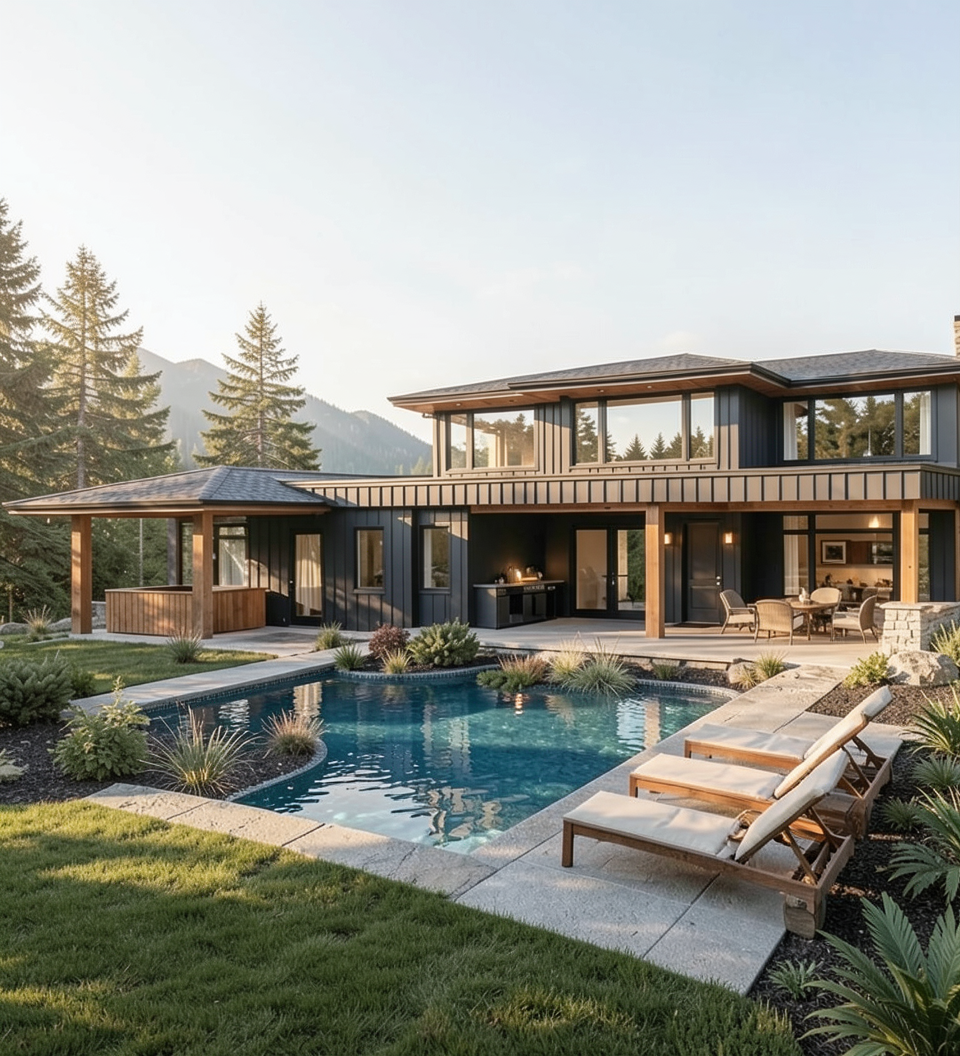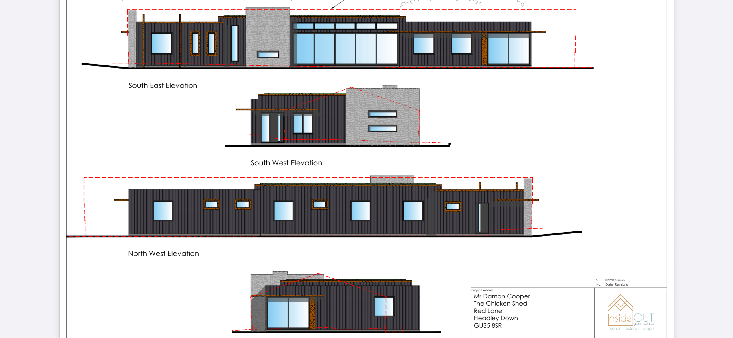 this contemporary house is clad in black vertical cladding and has flint stone elements and cotten steel detailing the doors and windows are slick plain and black