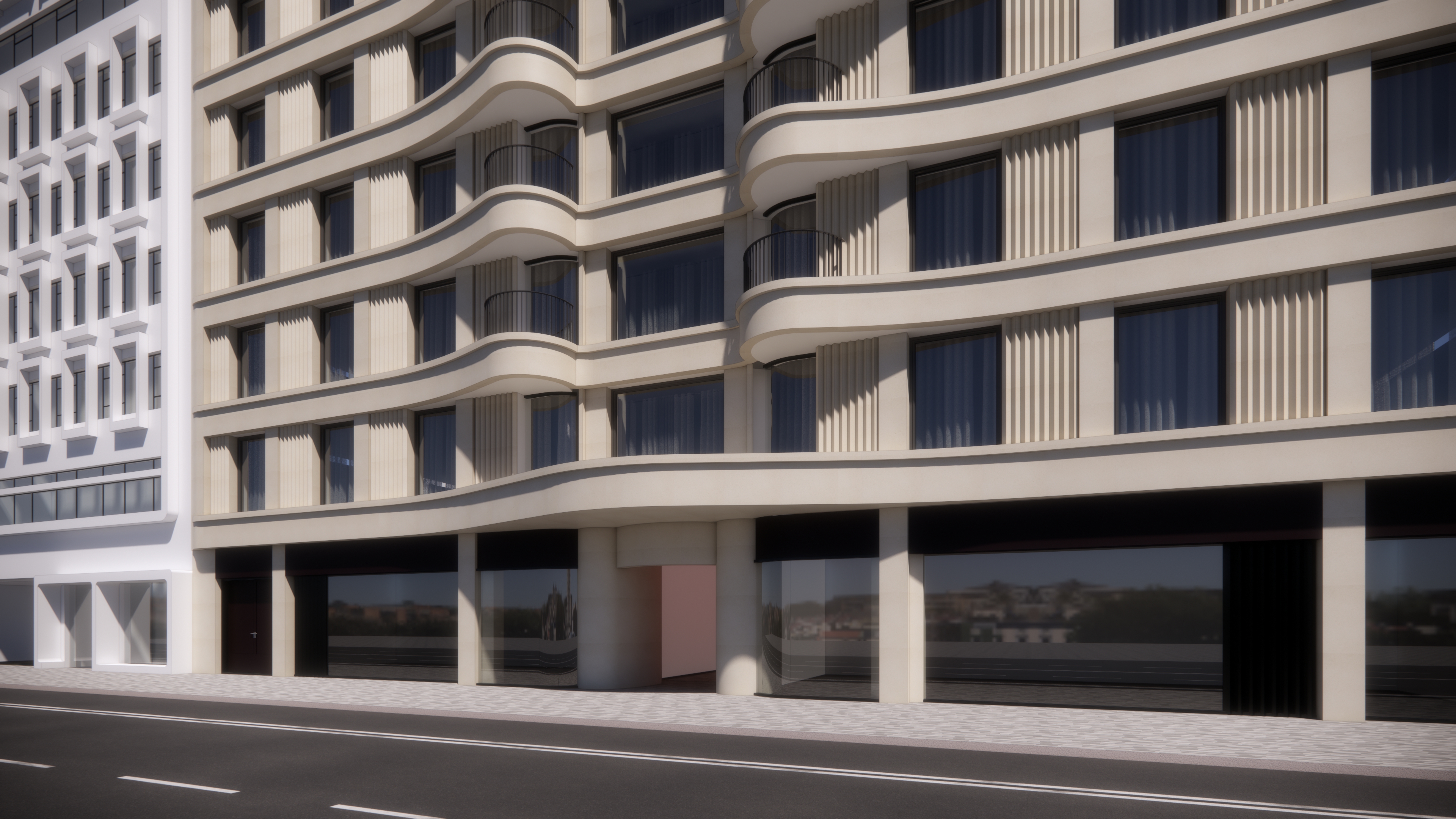 improve material and reflection there is a restaurant at ground floor add people and lights
