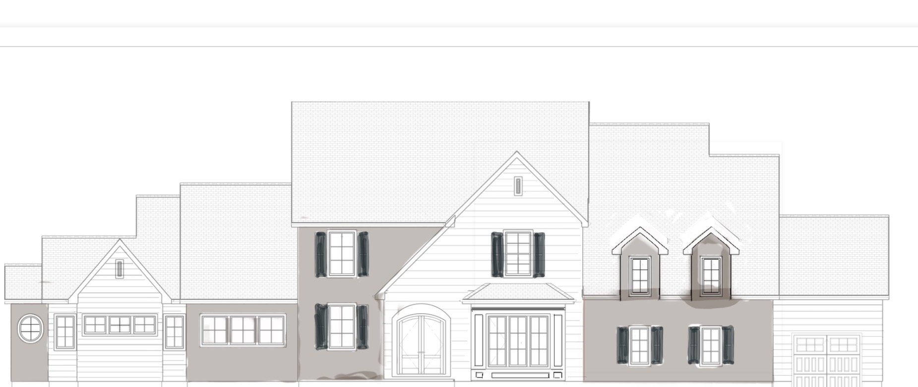 can you make this into a realistic photograph and show me the entire house make the brown areas a stone like an english cobblestone with thick white grout and a light white wash make the horizontal siding thick and a creamy white the roof brown the window white with white grids the garage door brown make the front door all glass full radius arch make the little details in the gable peaks the same color as the house there is a shed dormer on the side of the house that has a slight curved to the roof the slope over the front door swoops
