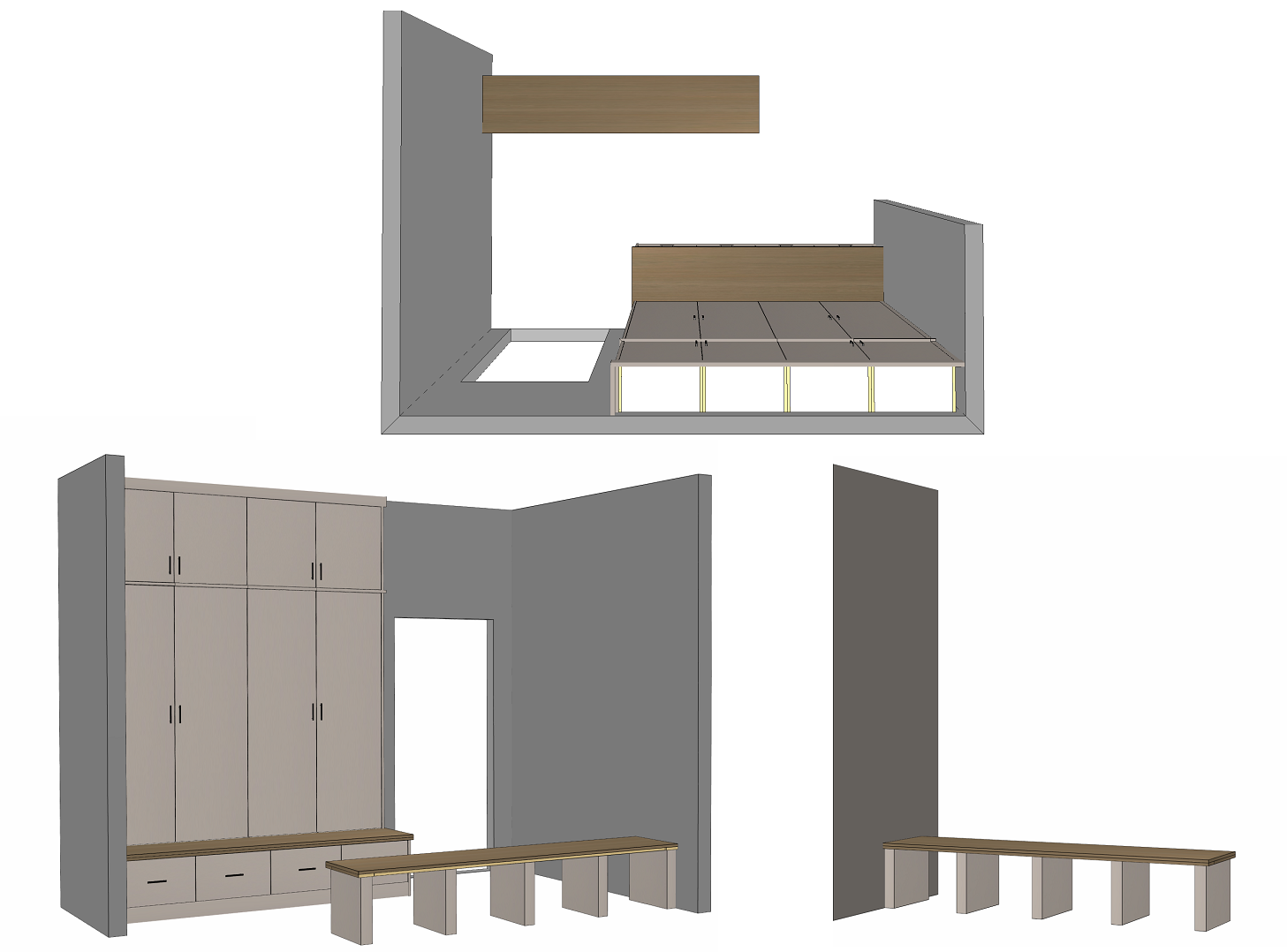 do not change the cabinets in any way preserve the exact cabinet colors materials finishes dimensions door and drawer styles hardware spacing alignment and all geometry exactly as shown do not alter the countertop shape backsplash appliances flooring lighting fixtures or wall structure only remove the construction materials clutter and mess from the scene clean the room and make it look finished and staged add a few simple tasteful home accessories appropriate for the style of the space but do not add or remove any furniture windows or architectural elements maintain the original lighting direction and realism enhance clarity and polish the photo while keeping the cabinetry and room design completely unchanged do not alter the lighting to keep the cabinet colors as they are in the image keep the white background do not add flooring just make the image realistic do not add a ceiling keep the colors as is do not add grain to the tan cabinets keep the grain on the wood tops