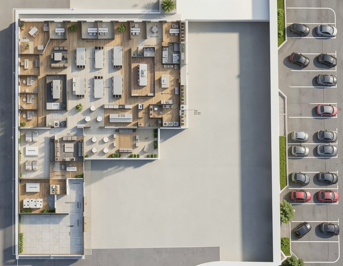 modern office floor plan concept open concept the right side is outdoor and the l shaped building is the inside
