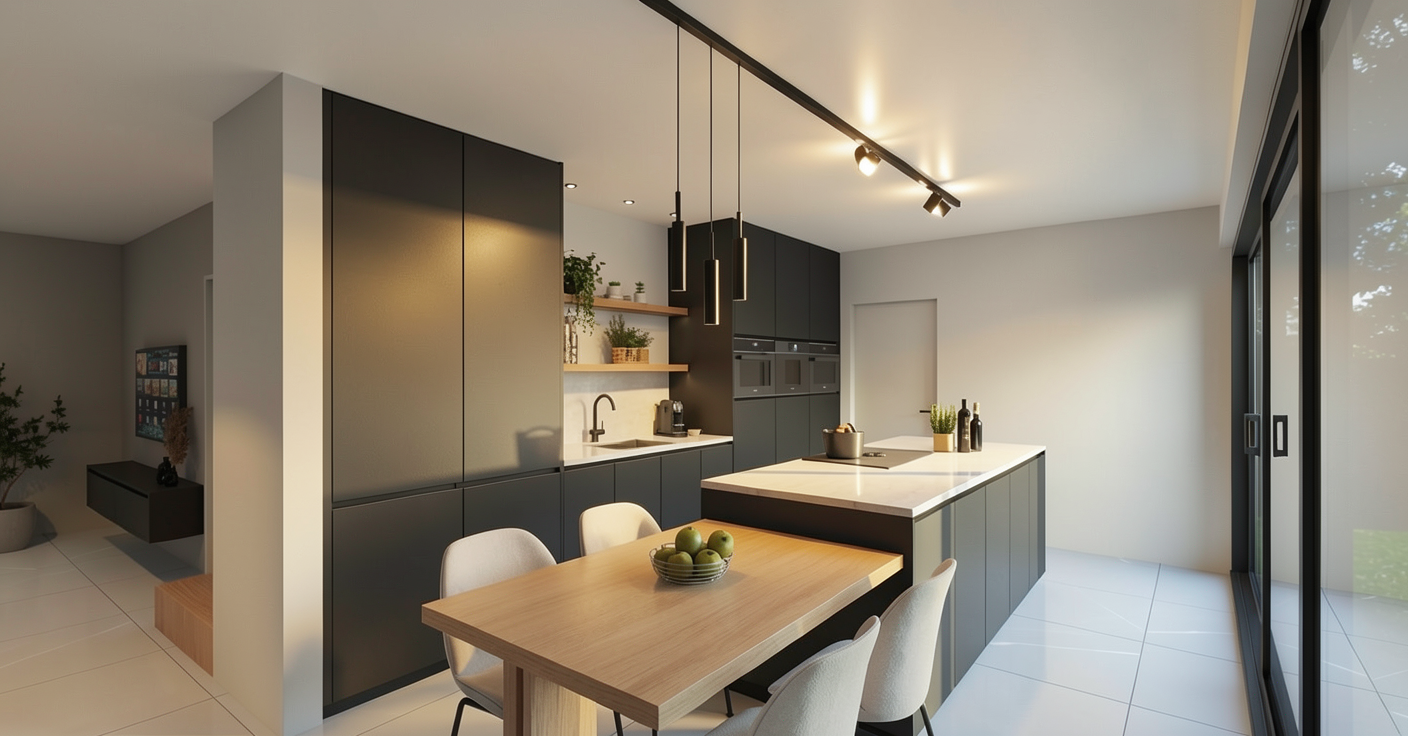convert this floor plan into a realistic isometric 3d view of a full house show the space from an elevated angle with furniture walls and details visible use modern farmhouse style furniture minimalist use the same furniture as shows on the plan do not change the orientation of the floorplan