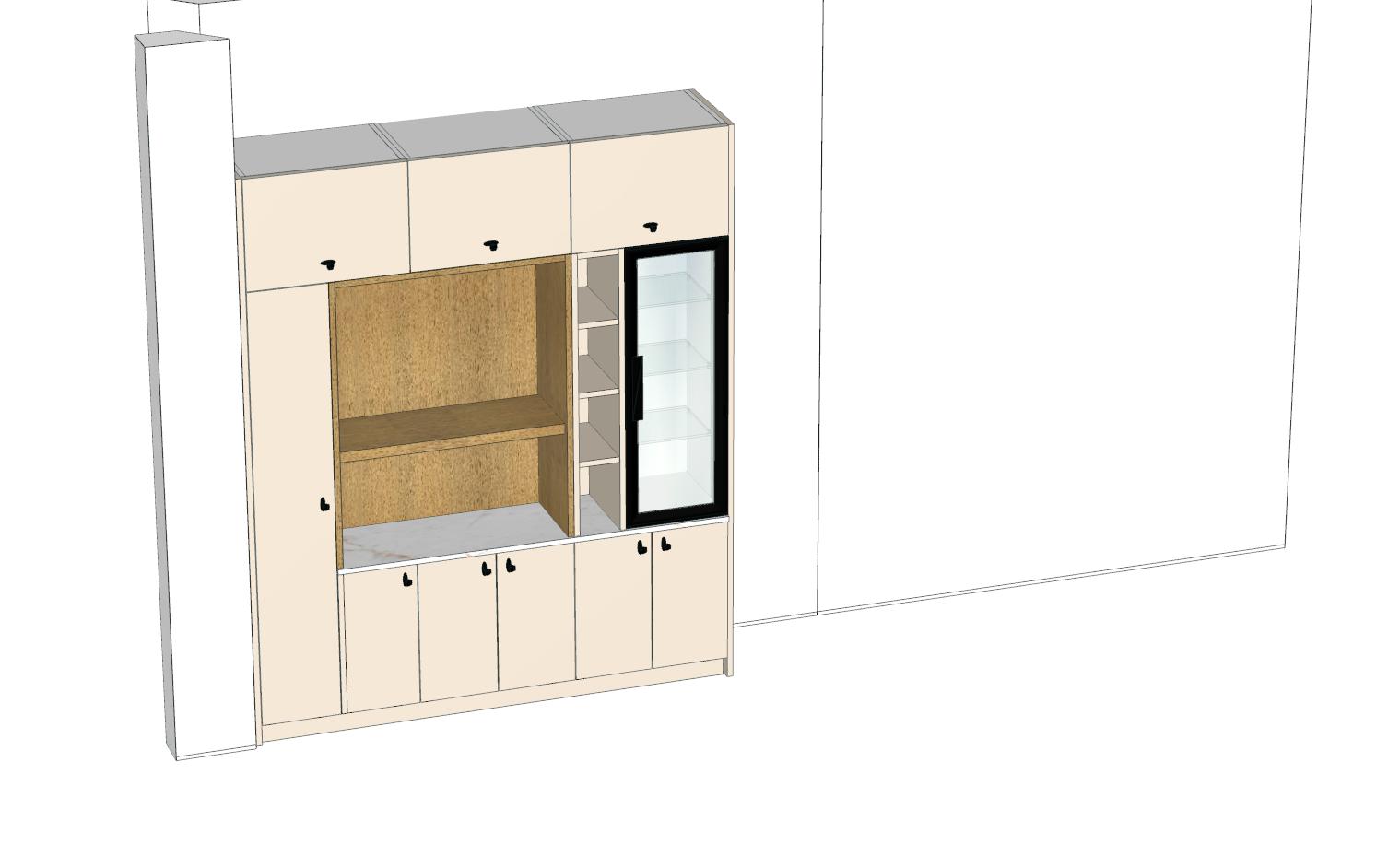 neceisto una imagen fotorealista de este mueble el acabado es lacado mate con la zona central en roble natural