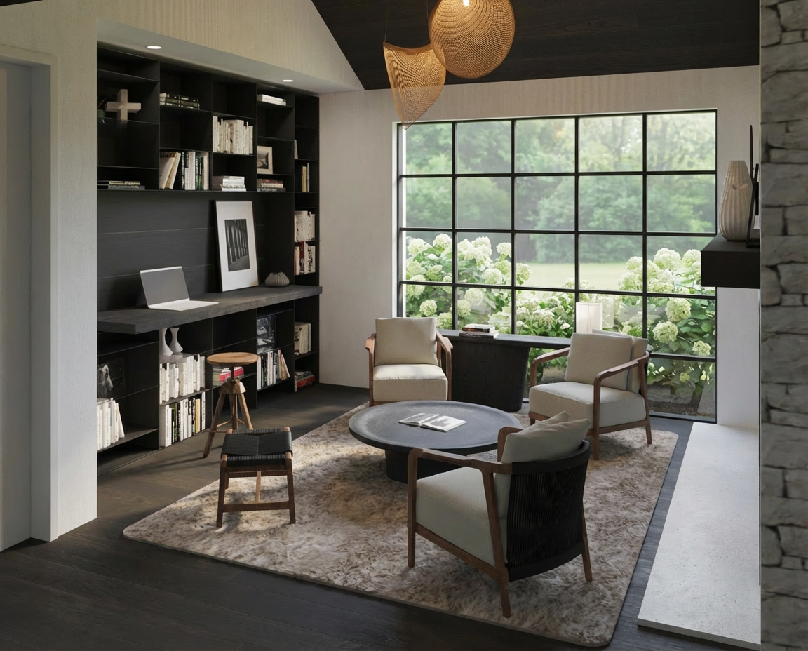 make as photorealistic as possible while keeping textures the same as selection professional landscaping with good lighting current material style just enhance them dark standing seam metal roof