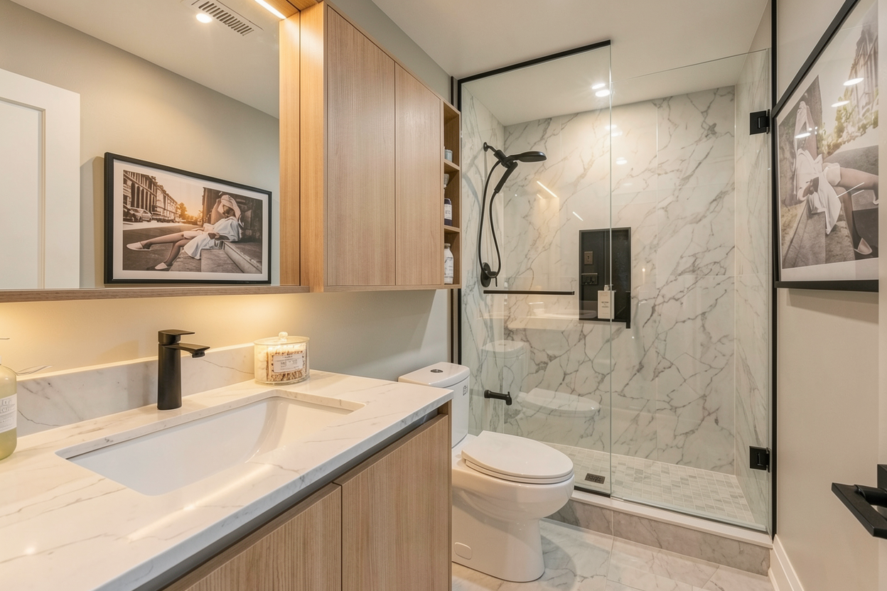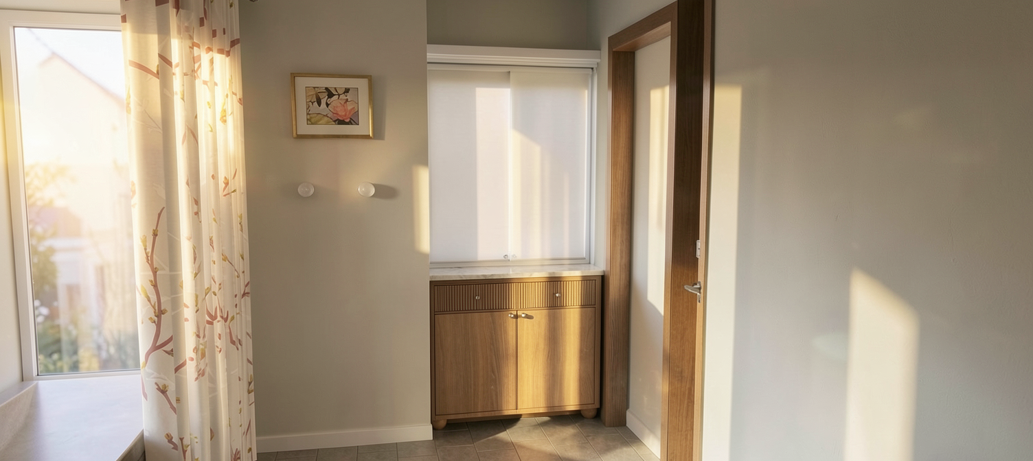 add small plant in corner on countertop