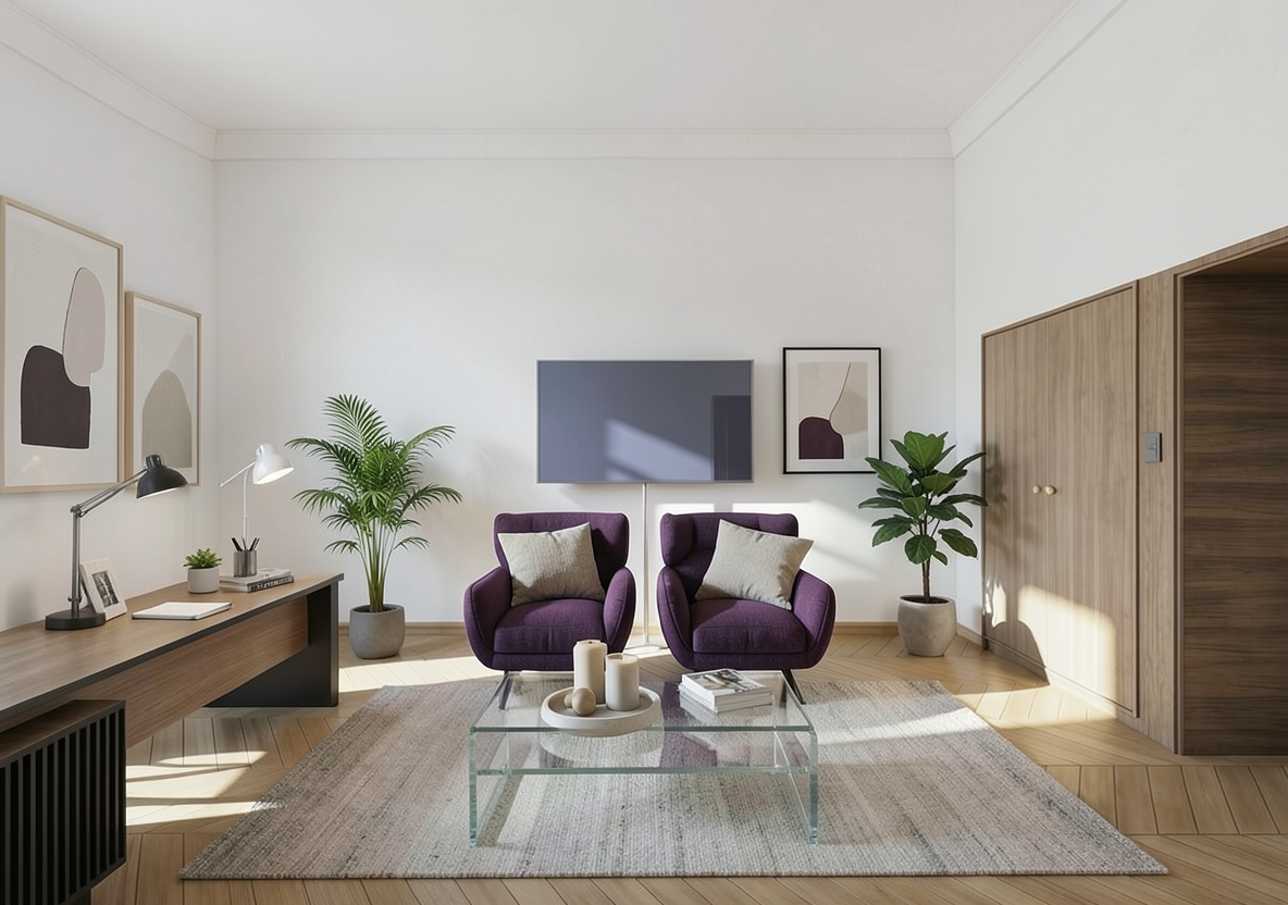 interior shot only replace the colors materials and finishes apply a modern scandinavian style through material and color changes only without altering shapes or geometry maintain identical lighting direction and scene structure produce a high quality magazine level photorealistic render with refined textures and natural light architecture