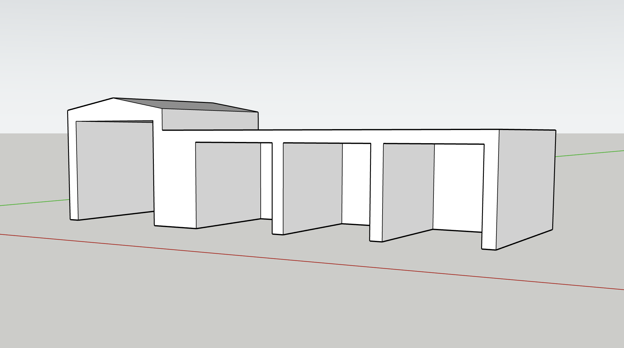 exterior shot make the building out of cinderblock add a large glass garage door to the bay on the far left and for the three bays to the right of the garage door bay add manual car wash equipment such as pressure washers and water drainage systems