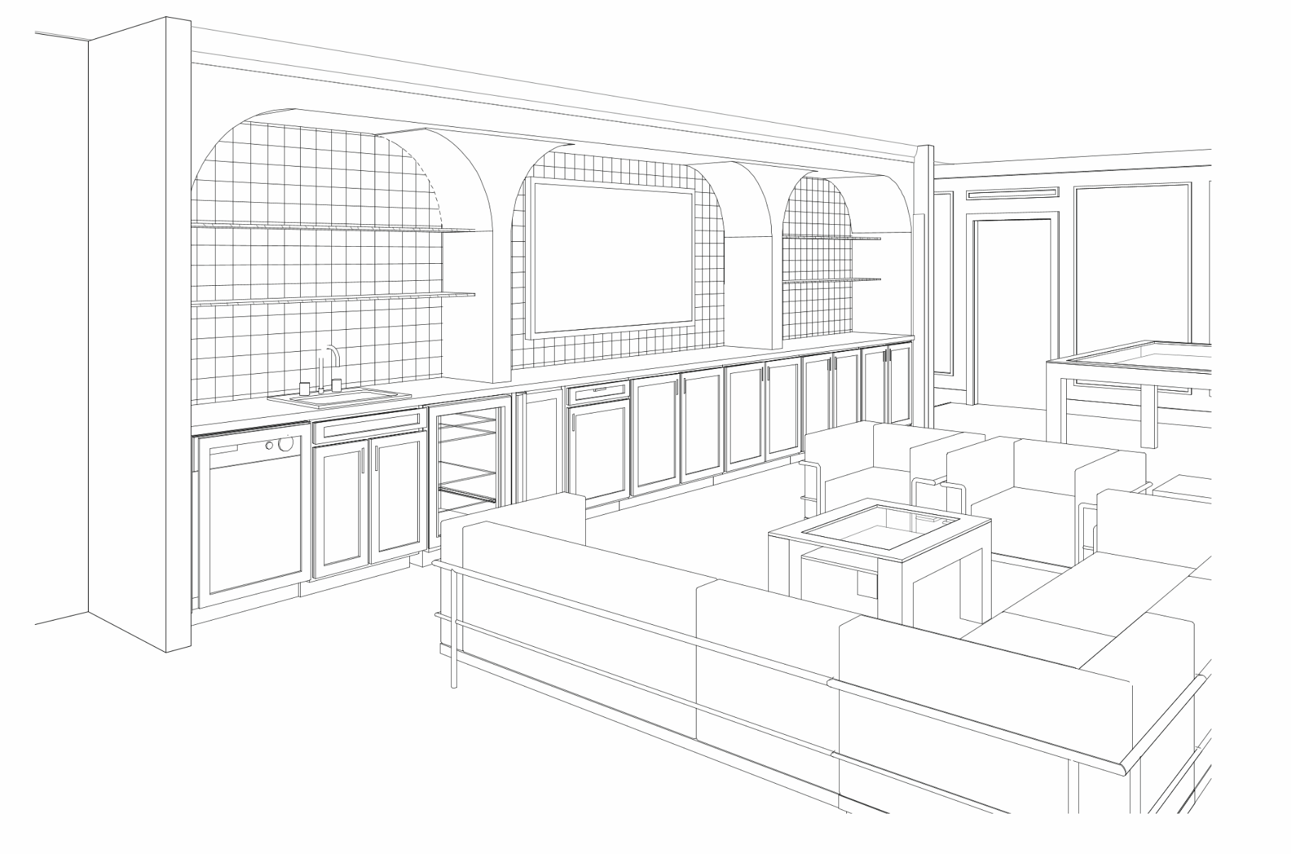 interior shot medium blue cabinets