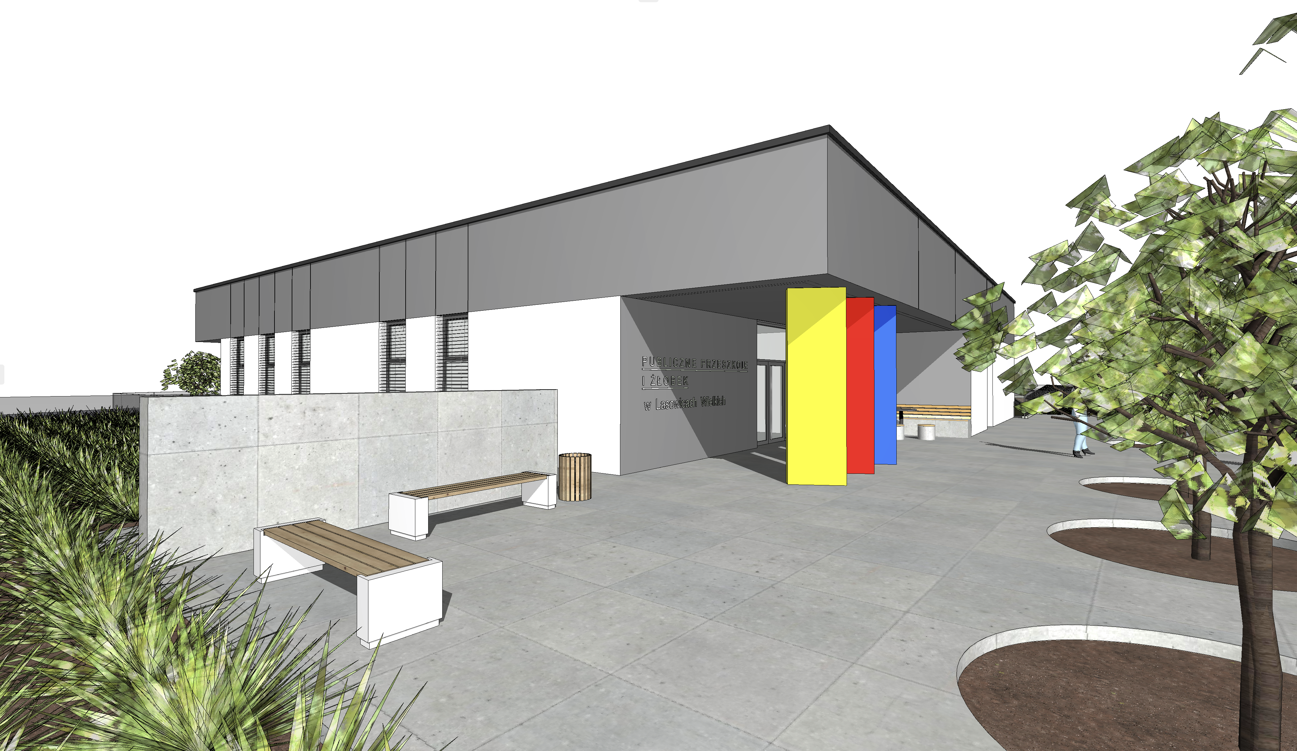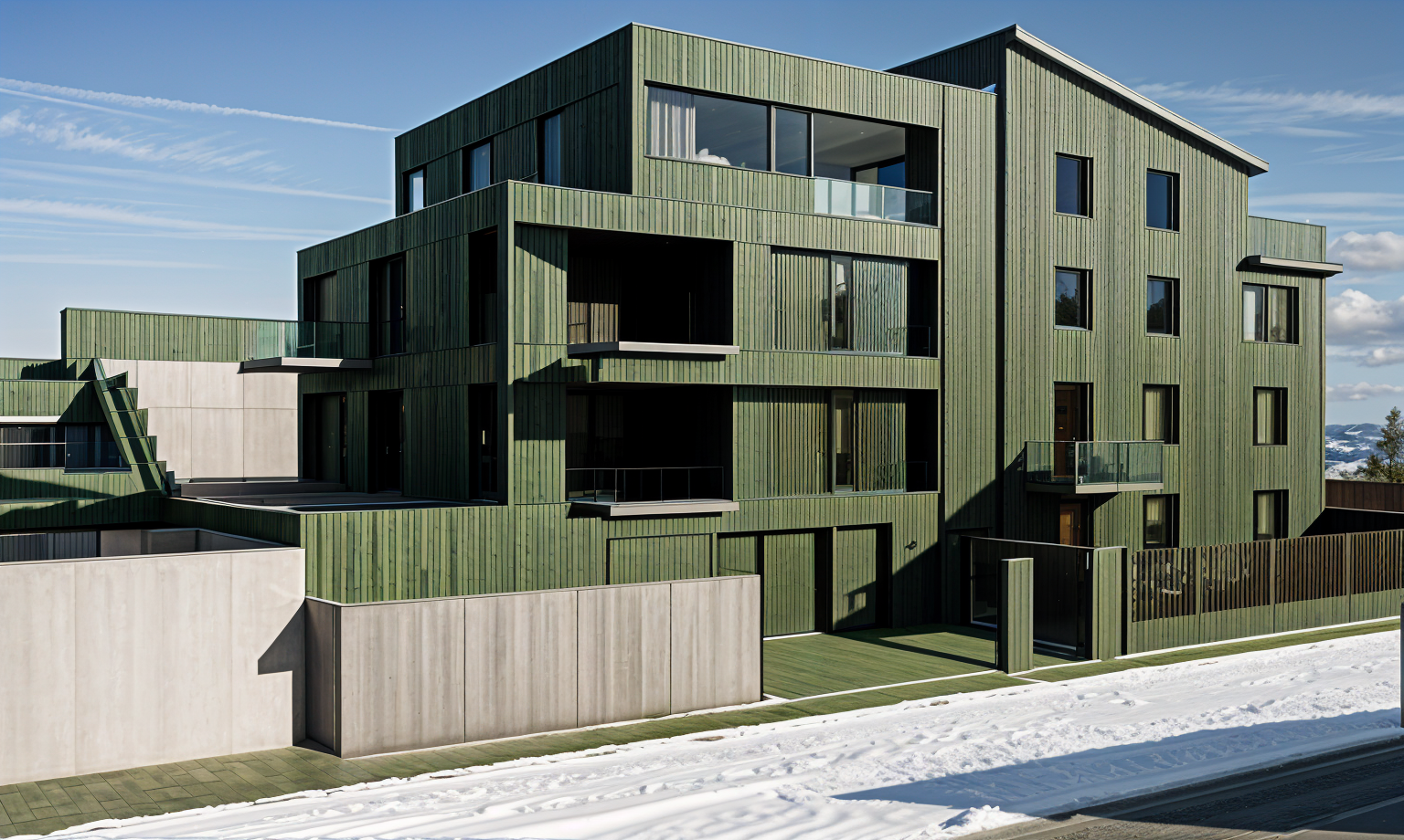 exterior shot white and graphite facade clear sky architecture