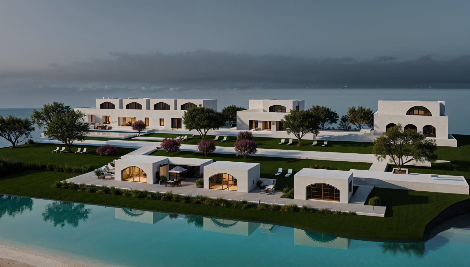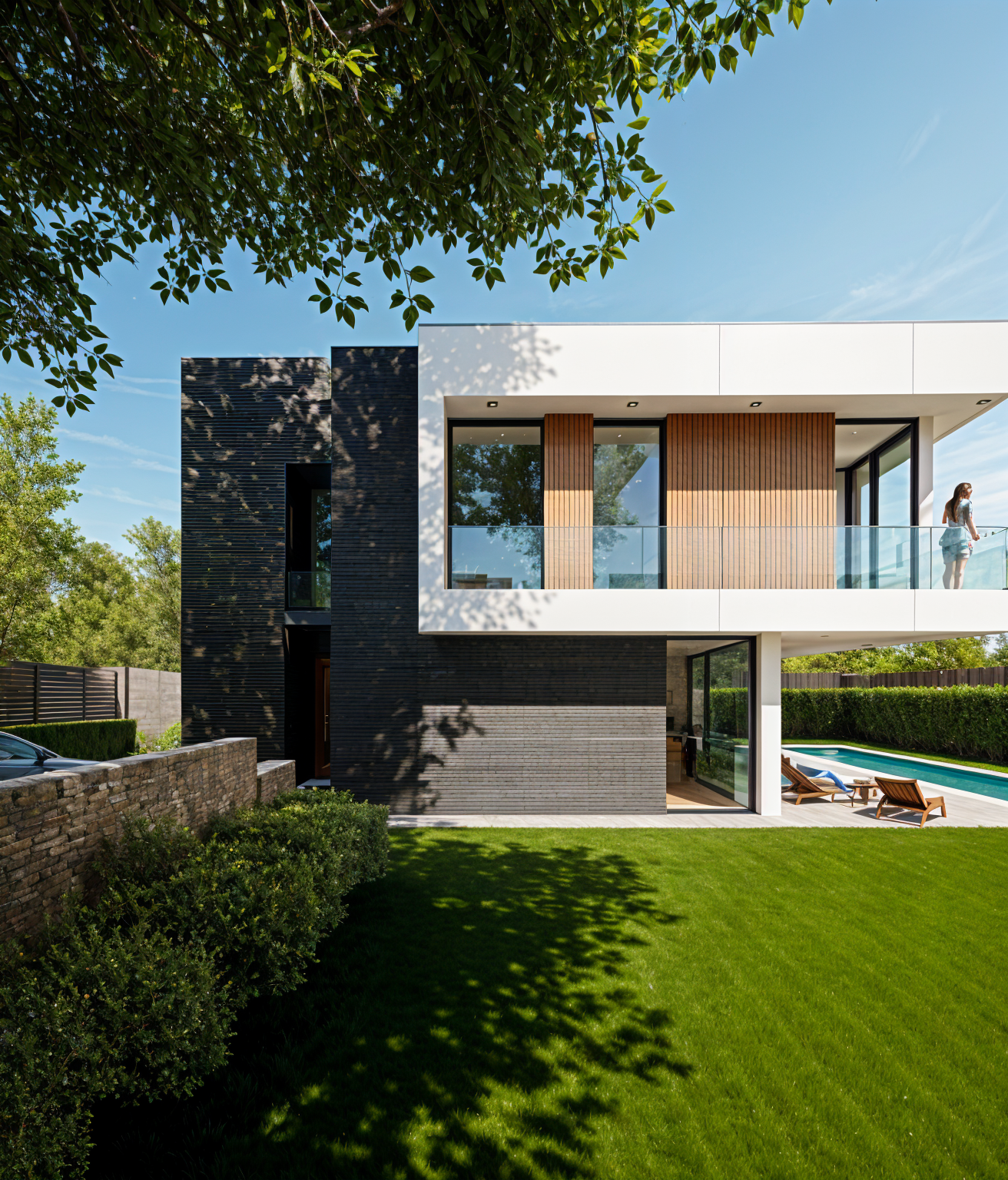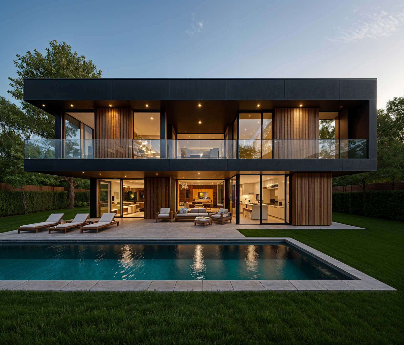 render a modern kitchen with smooth warm white walls a natural oak wood floor with visible grain creating warmth design tall elegant white doors with clear glass panels paired with black handles for a contemporary touch use soft ambient lighting to enhance a calm and inviting atmosphere the cabinets are a rift sawn white oak stained a light stain