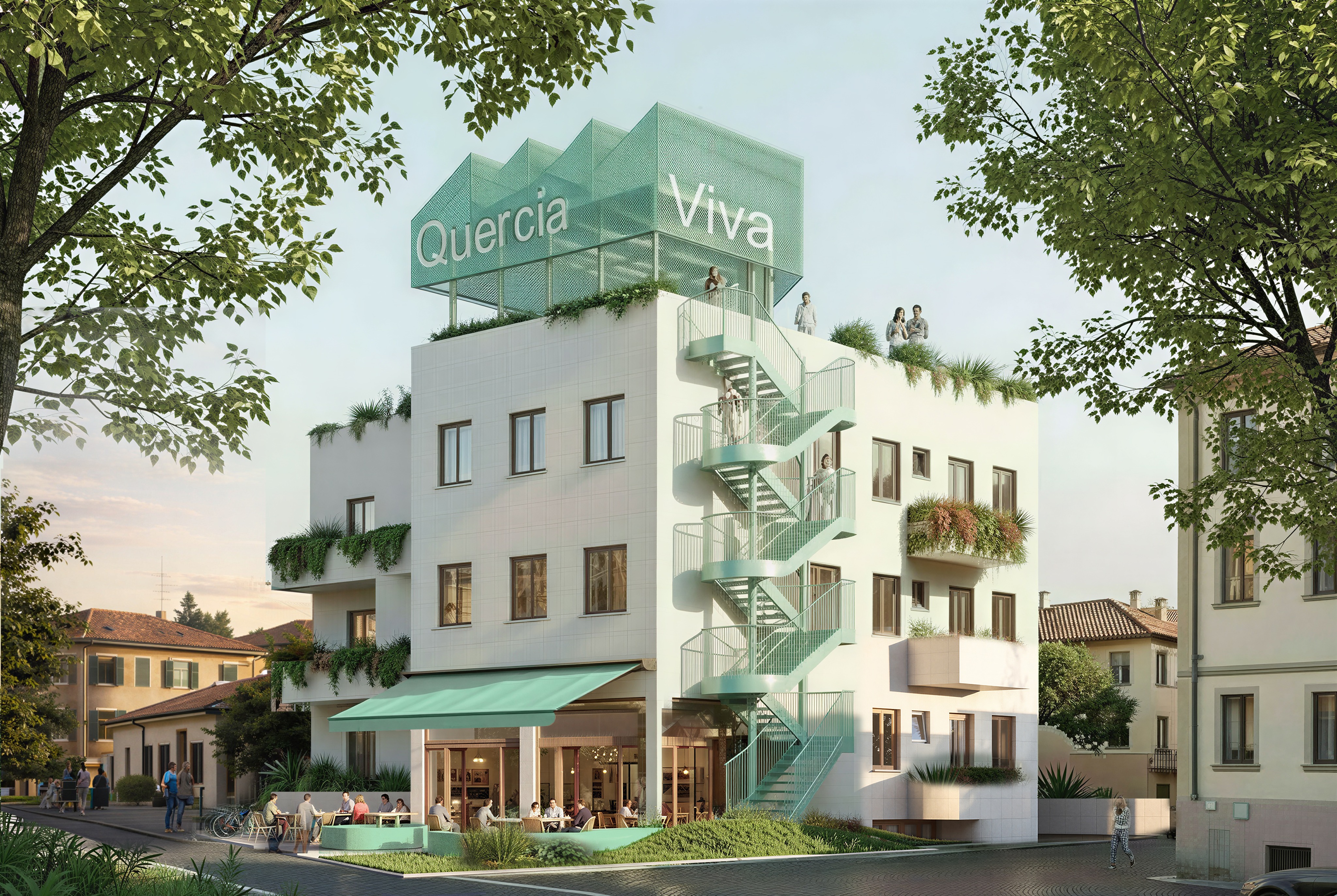 dont change any structure of the image or anything retain all colour and shapes and form of image just make it photorealistic the materials on rooftop are metal mesh retain the colours as it is just make it insanely photorealistic