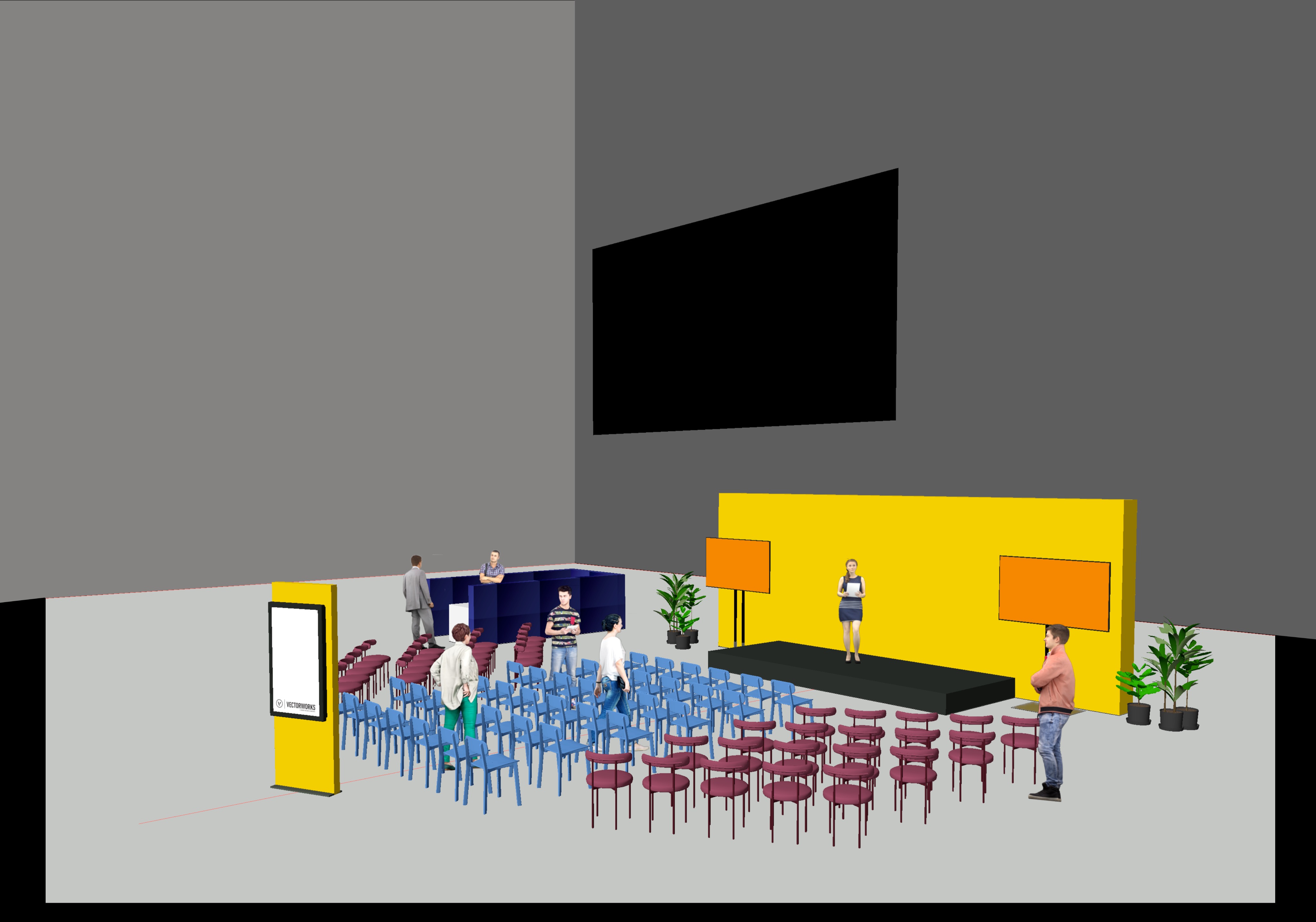 large dark space grey polished floor business expo lightening stage do not change or add model structures