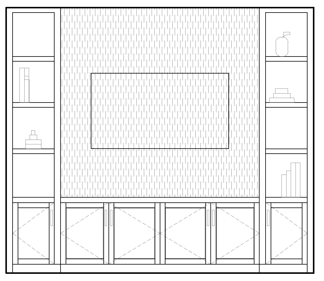 interior elevation cabinets walnut color wallpaper neutral behind the tv tv in the center