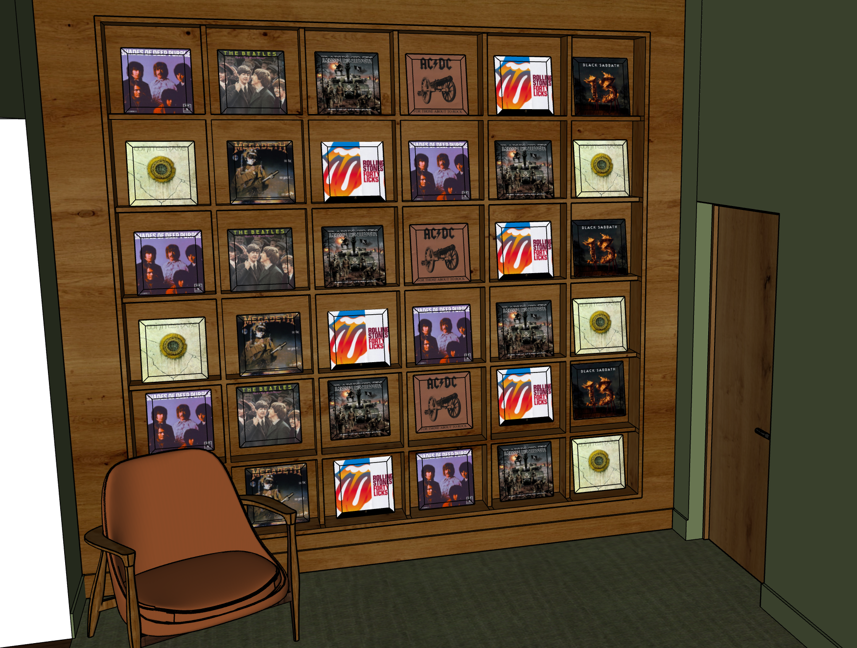 make realistic put downlights lighting each individual record on the shelves
