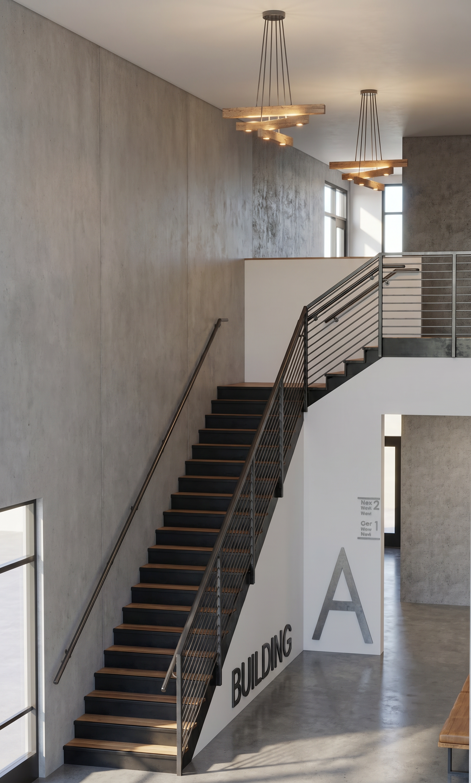 render a photorealistic perspective of this commercial plaza do not change the view only enhance the current materials few trees behind the building sun should illuminate the entire front of the building a vibrant clear sky with atmospheric depth render in hyper realistic architectural visualization quality 4k resolution