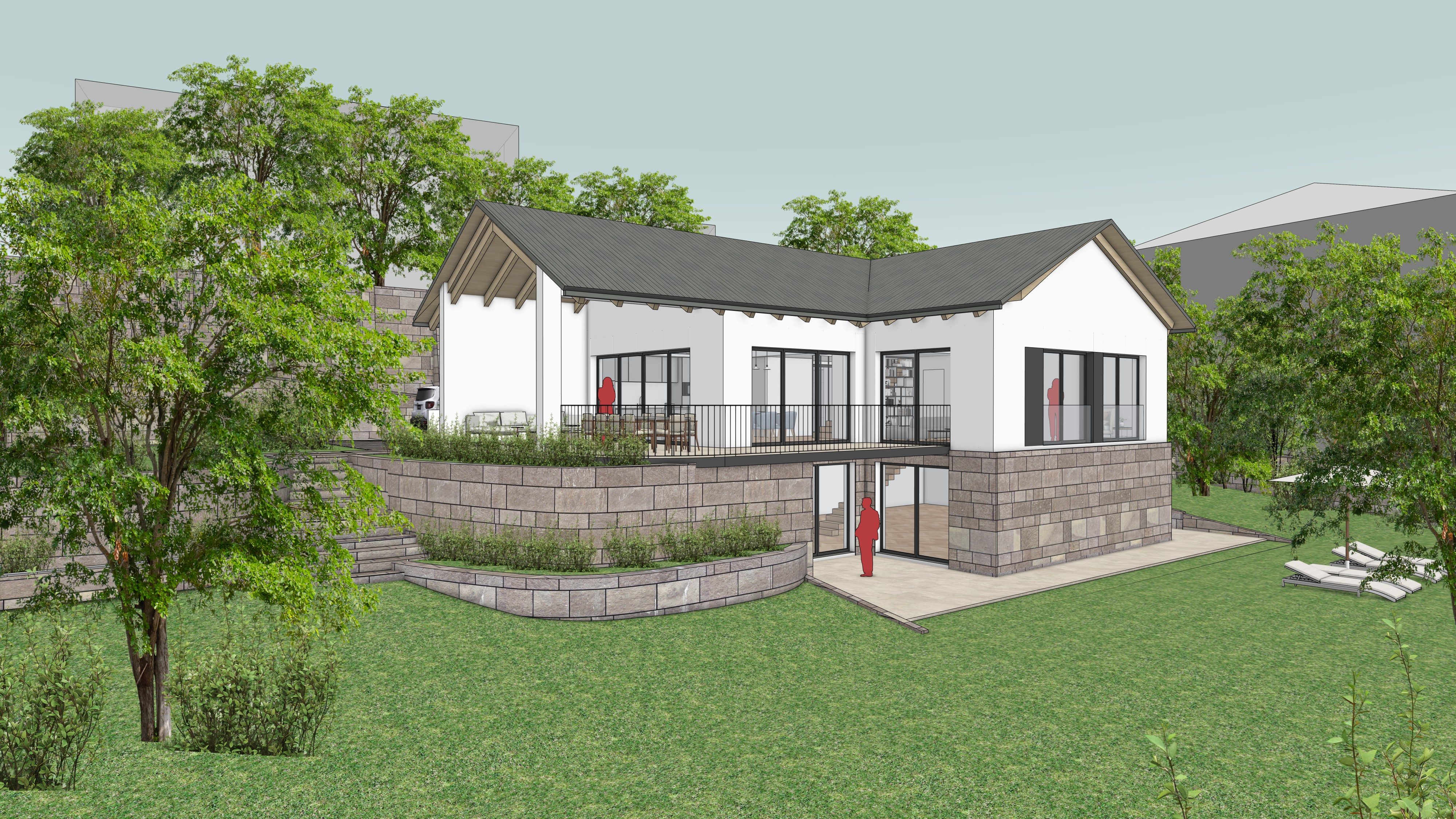 mediterranean revival exterior shot a nice modern villa with a garden in front with a basement made in sandstone architecture