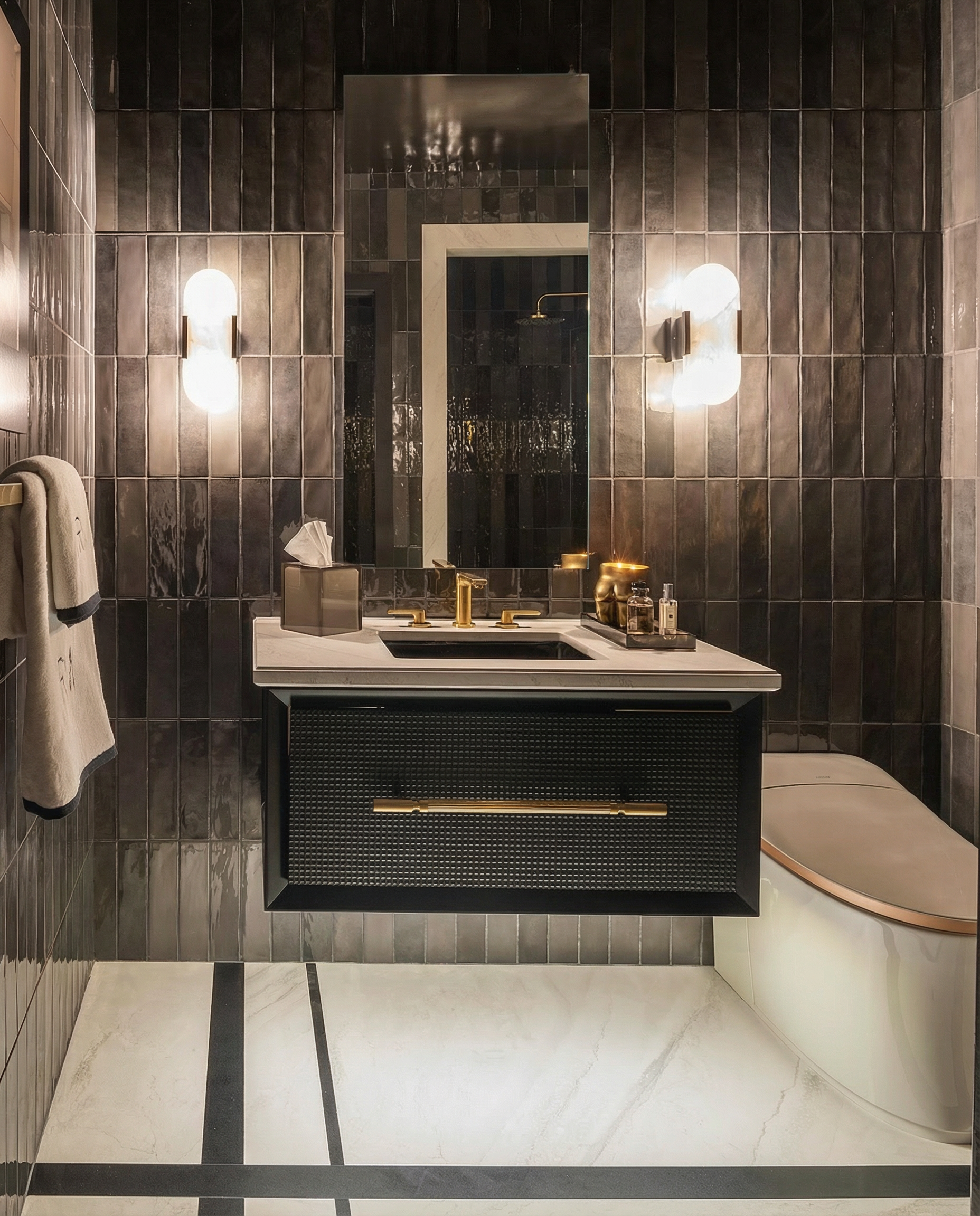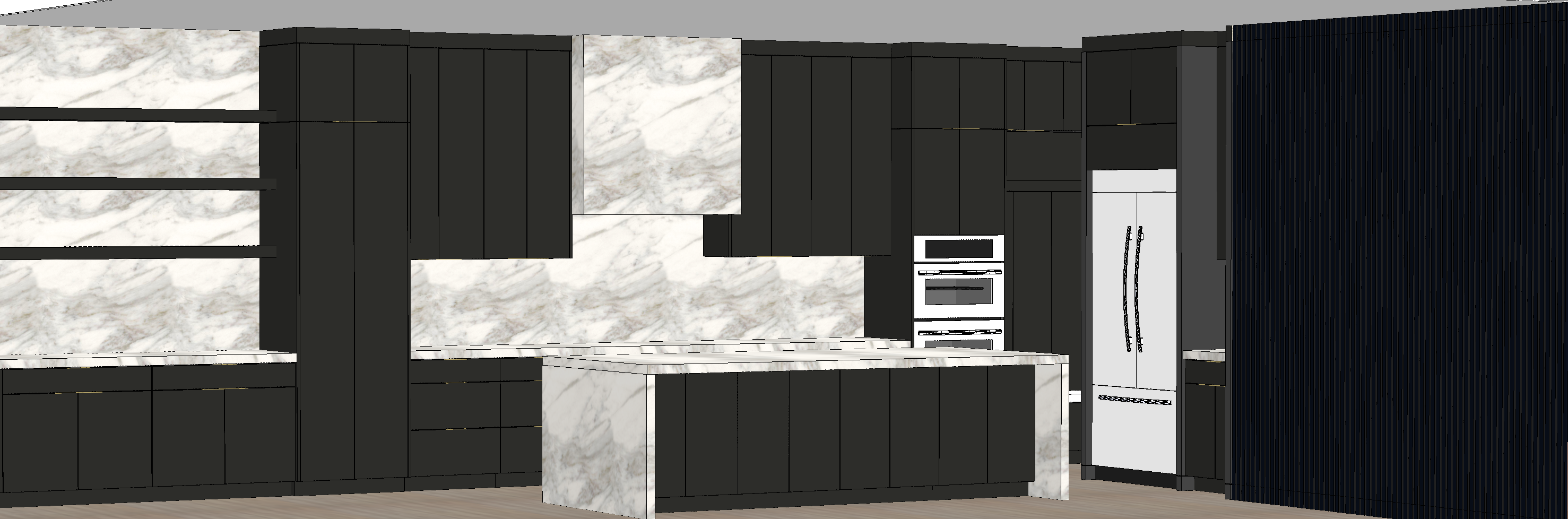 add modern chandelier above island add stools at backside of island remove one of the stools
