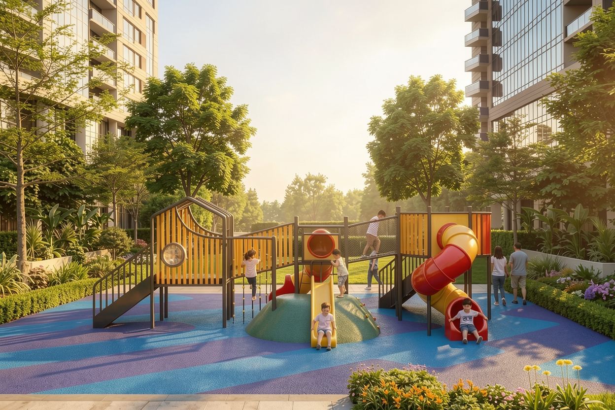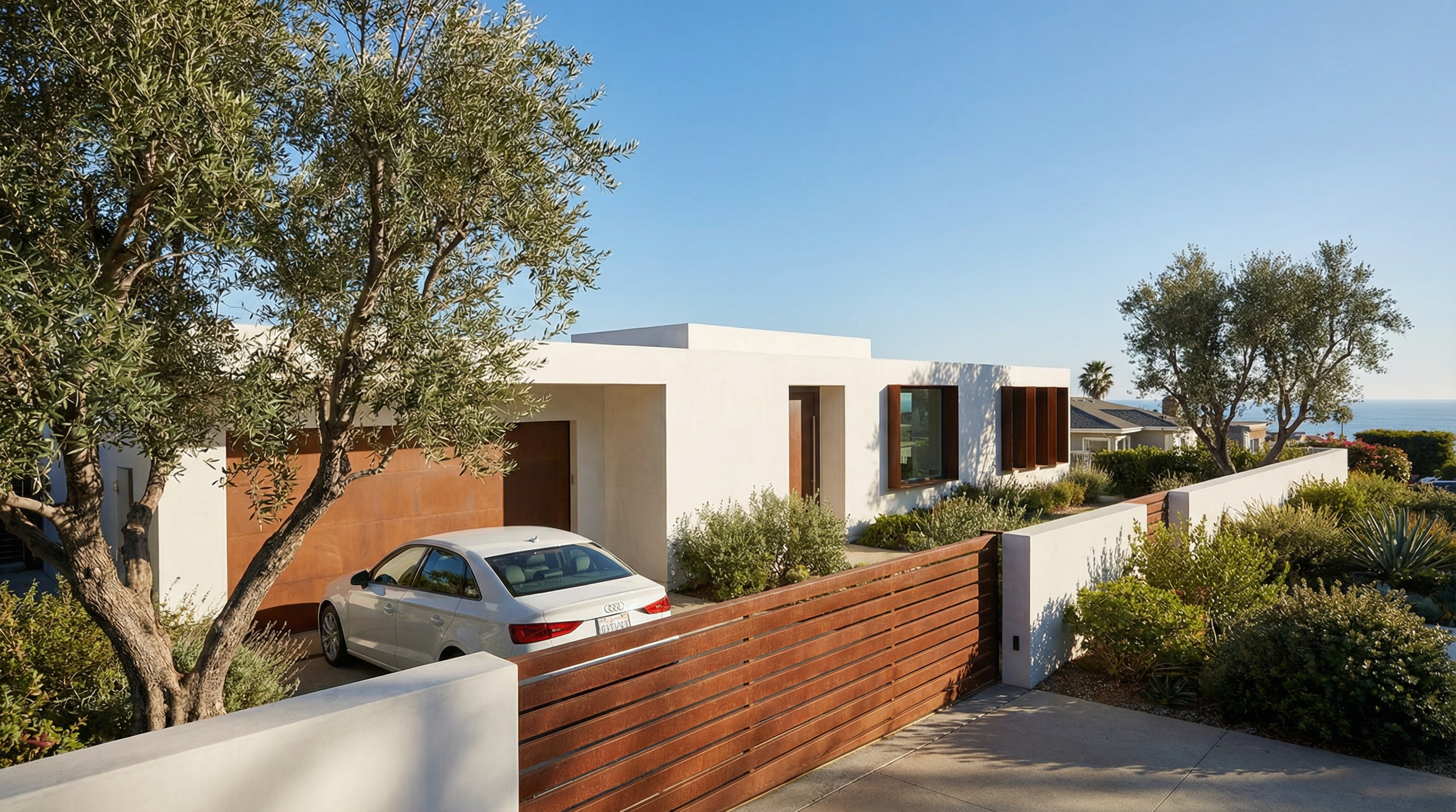 concrete floor black mosaic tiles half hight walls white