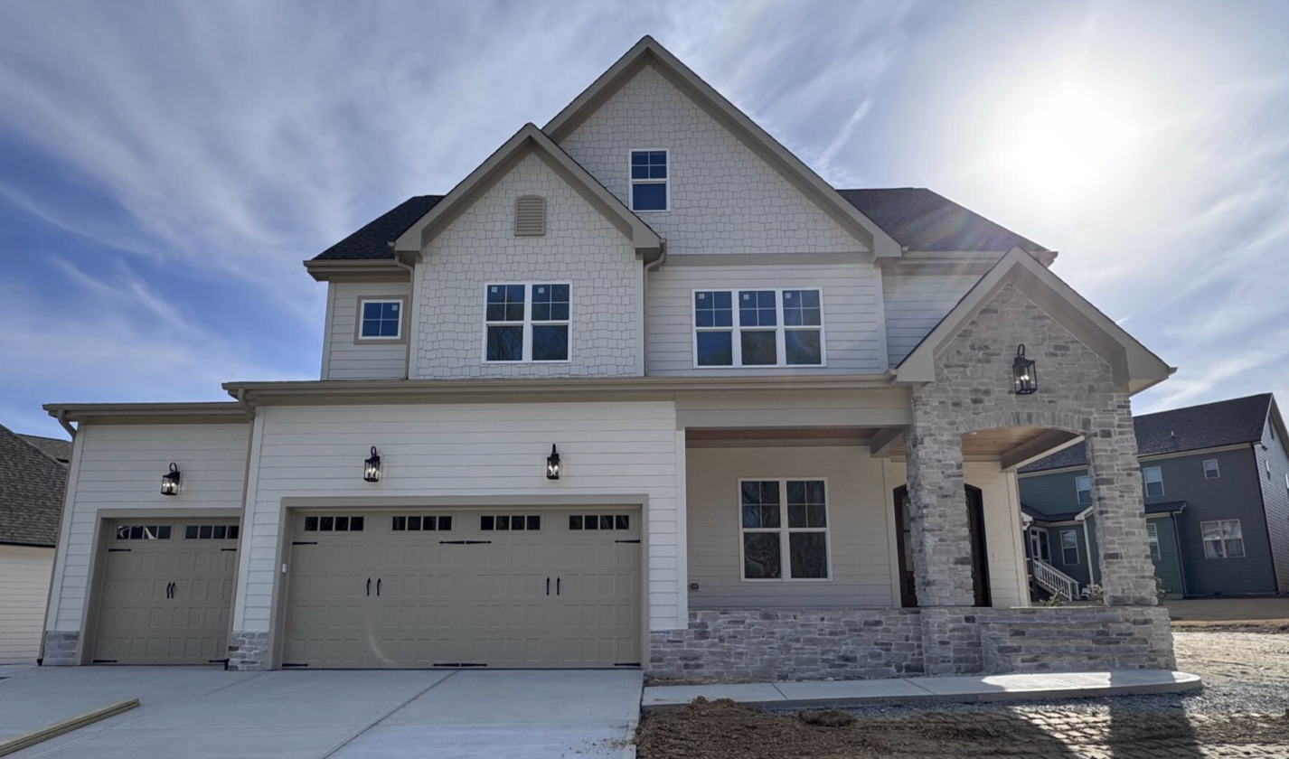 shange all siding to a soft gray change all trim to white white garage doors