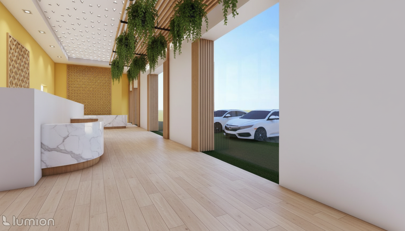 add some charging stations and people coming out of the car and get rid of the lobby