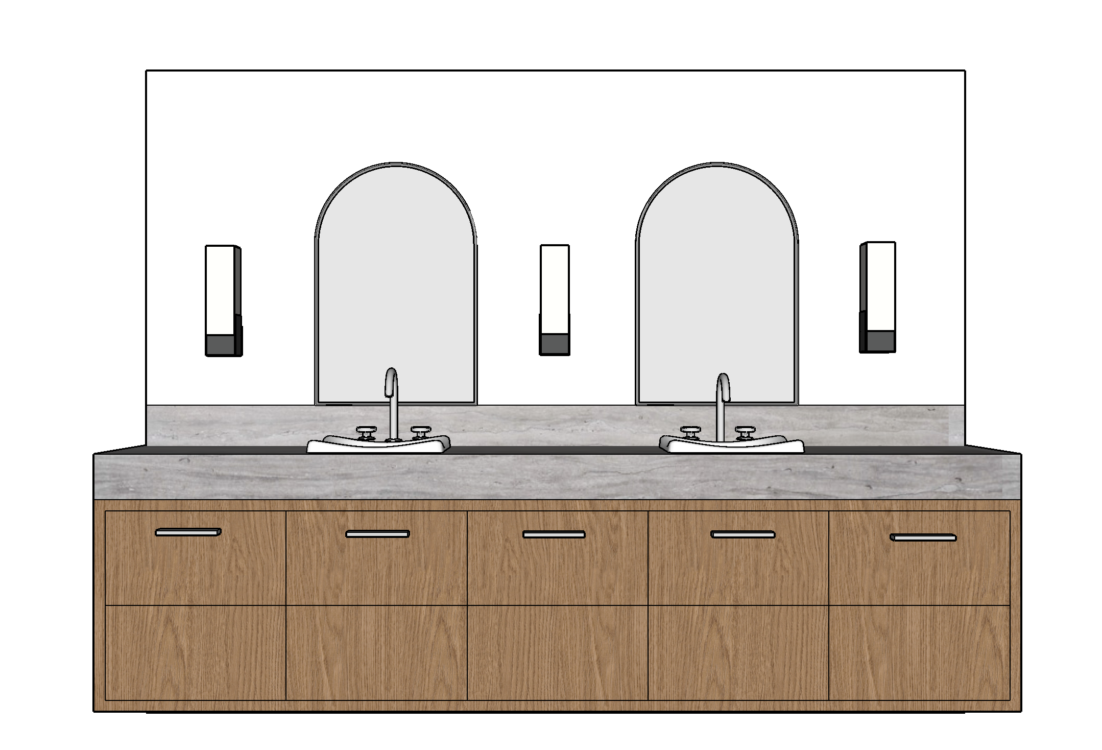 guest bathroom vanity wall floor tile is light grey marble looking tile there will be hardware on all the drawers