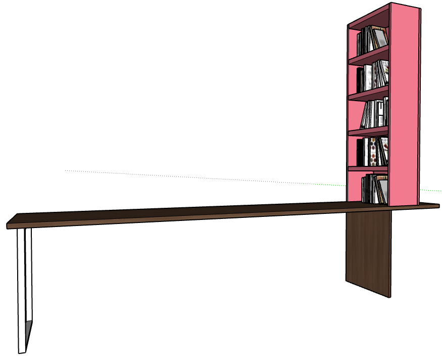 renderiza este mueble elimina las plantas que se vea el fondo blanco la estanteria es lacada en color rosa fuxia el escritorio en madera