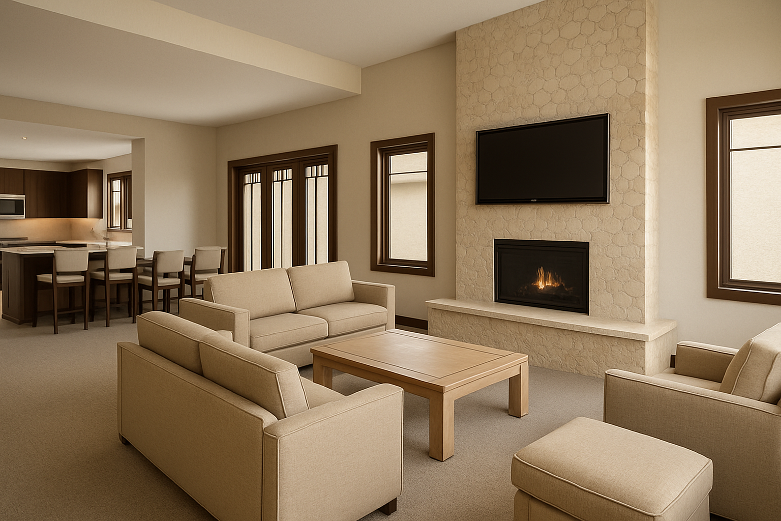 render a hyper realistic modern high end contemporary three story house in florida setting where there are palm trees maintain the window design where there are shutter design on left and right side the garage door is a sleek modern design in matte gray with wide horizontal panels and narrow glass inserts that create a clean contemporary look while letting in controlled natural light the roof is gray metal roof featuring a mix of gray brick white stone featuring large windows the exterior features a horizontal walnut wood panels on the center where the 3 windows are located the finishing around the garage doors are light gray bricks the entrance includes a square arched in dark gray brick finish the main door is 6 feet wide made of frosted glass with 4 horizontal mulls the trellis are all in walnut brown the walls are a soft white with a smooth finish creating a serene and inviting atmosphere with lots of greeneries and landscape and with dramatic sky