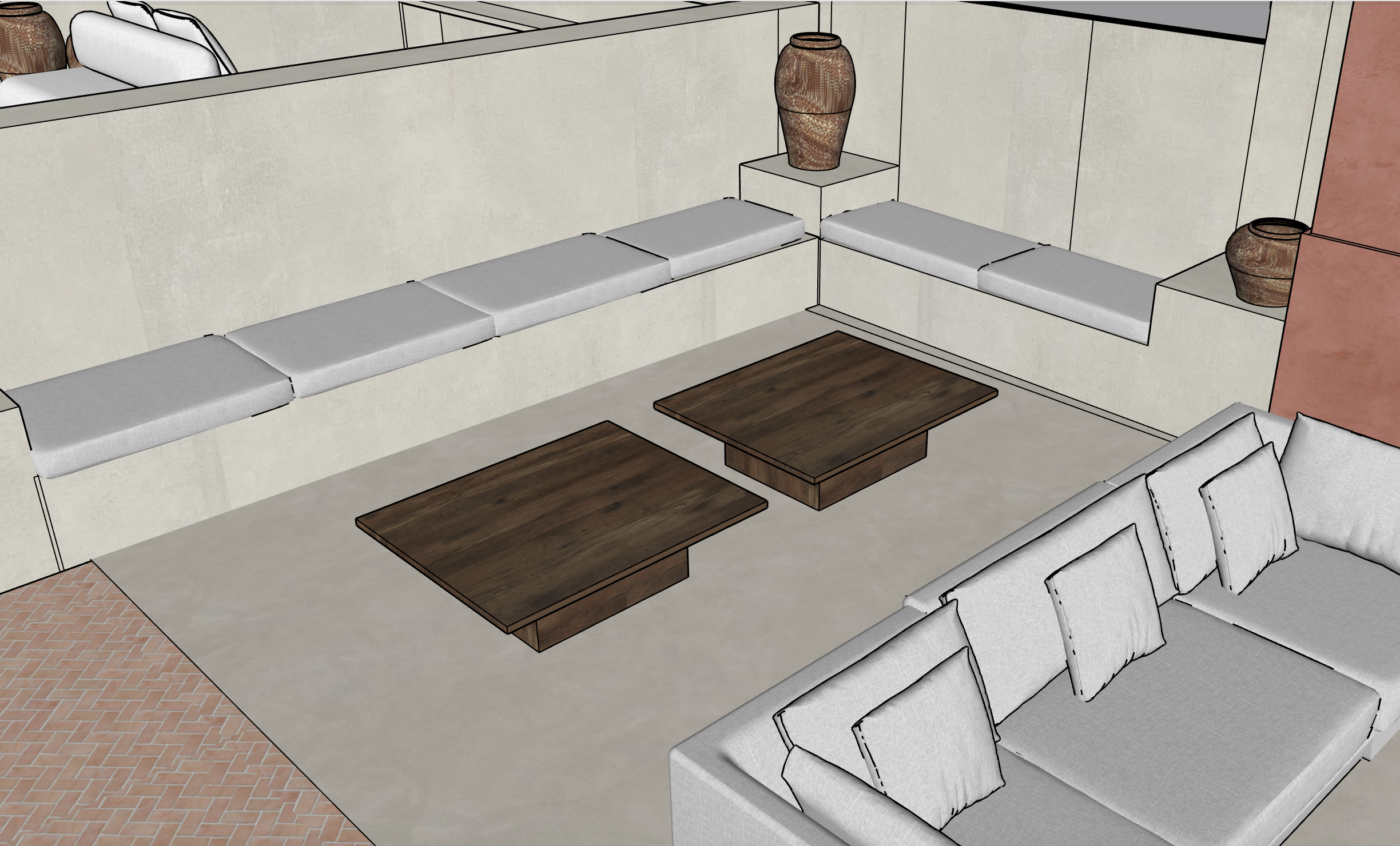 las paredes y el suelo es microcemento y la estructura del banco de obra