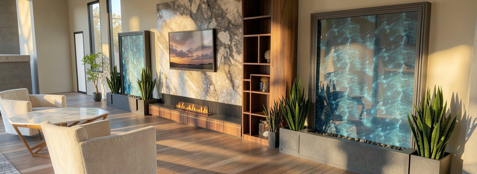 make this photorealistic add integrated lighting under the shelves