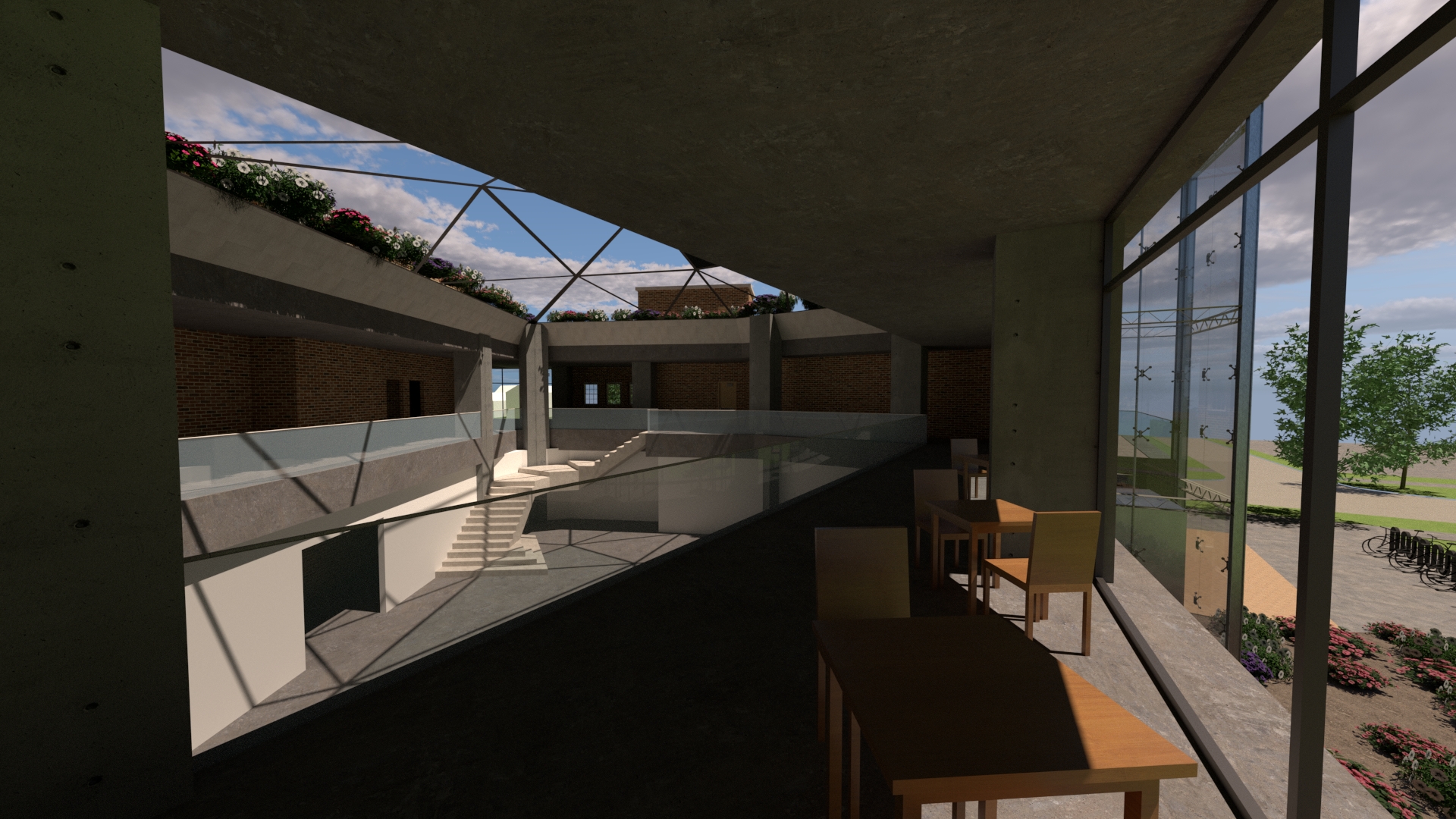 can you render in people walking a scuprutre to the riught of the stairs on the first floor