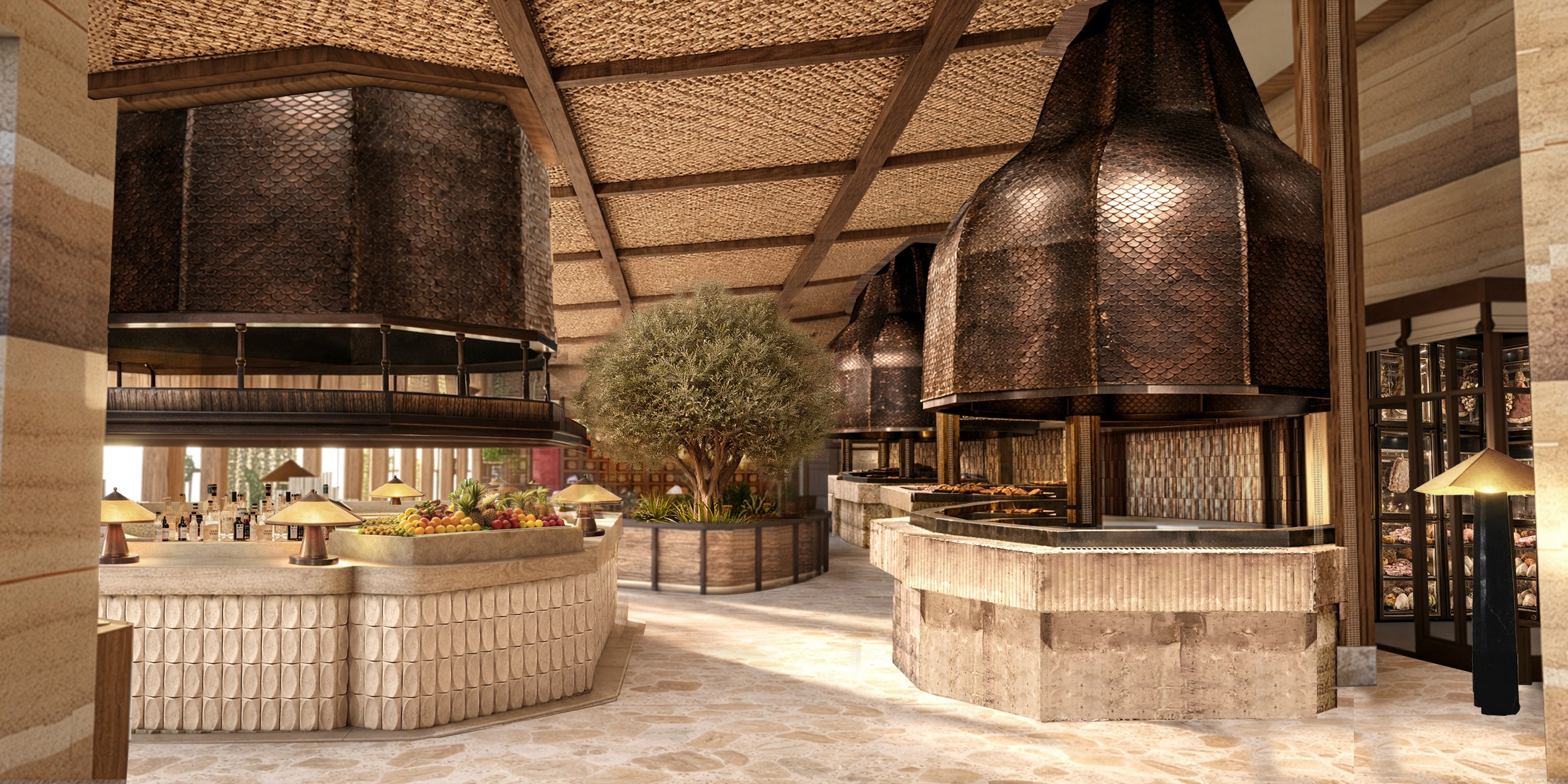 keep the lighting and colour temperature slightly warm as in the base image keep all the textures exactly as they are enhance them a bit add timber frames between the metal hoods and ceiling as marked in the image