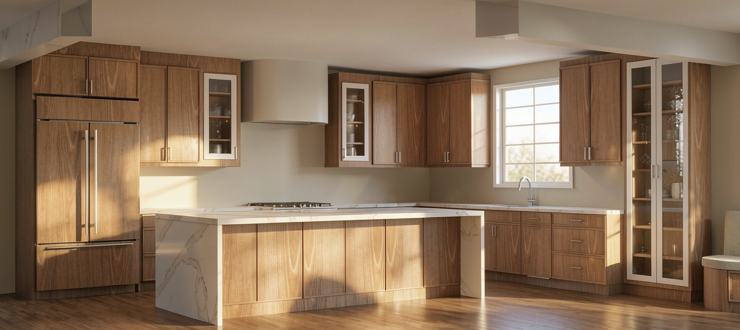make as photorealistic as possible while keeping textures the same as selection professional landscaping in a lightly wooded scene with good lighting match materials to plan sage color vertical siding white trim and corner boards white porch posts black soffit fascia gutters downspouts black windows white window trim white garage doors driftwood roof no stone remove text