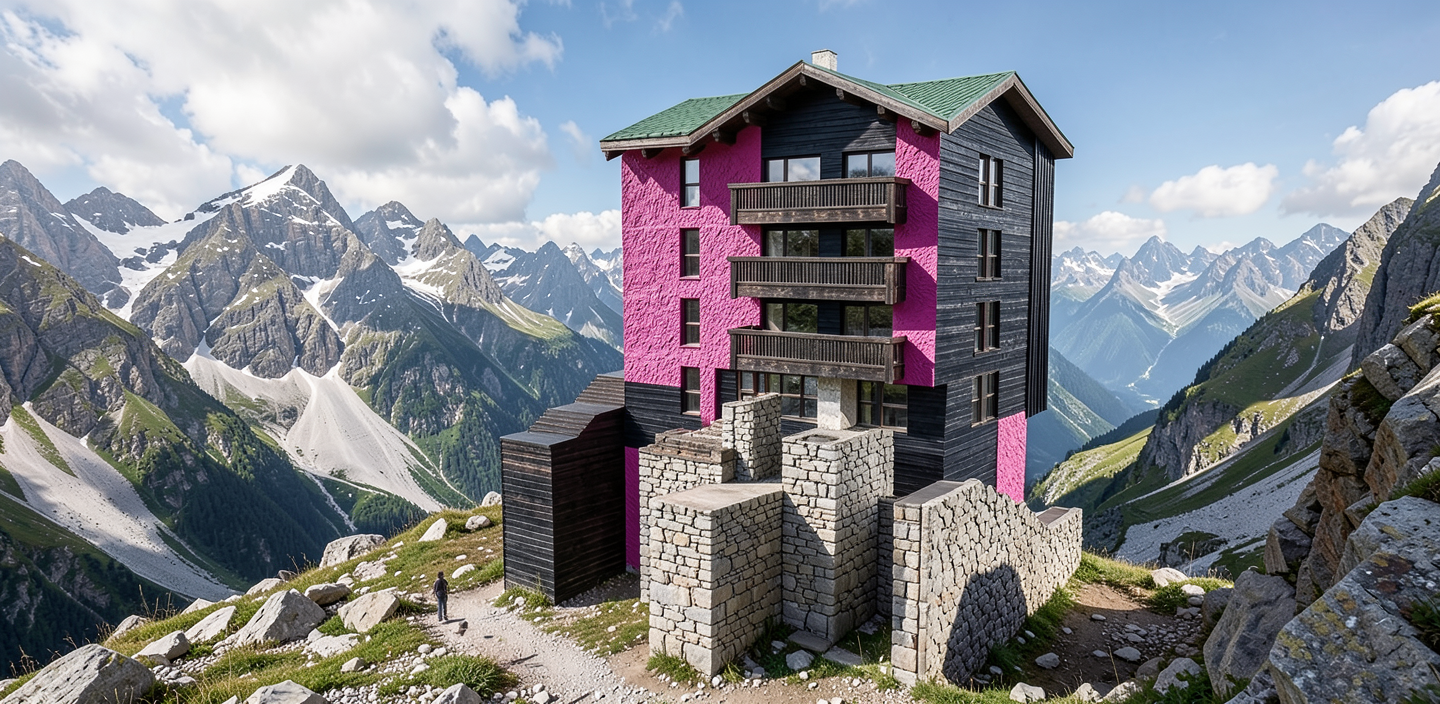 mountain image with dark wood and stone