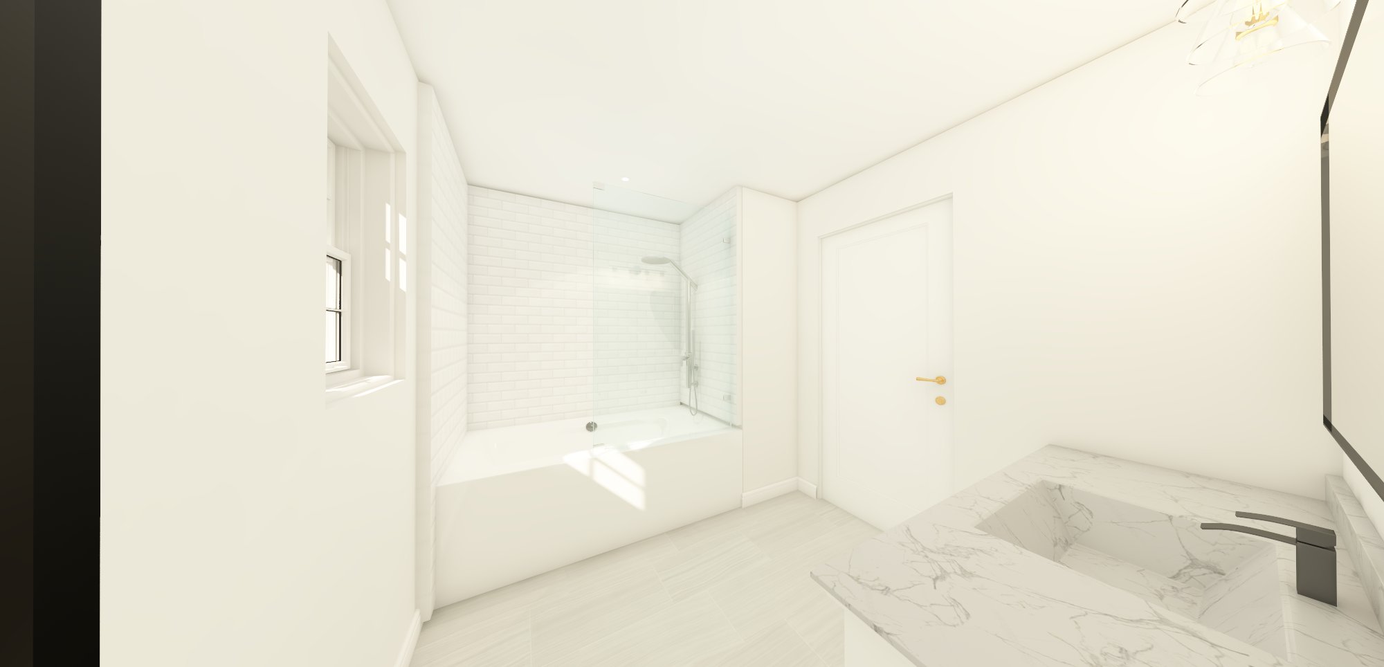 make the shower wall tile a seafoam green color put a niche in the shower unlighten the image and make the light warm