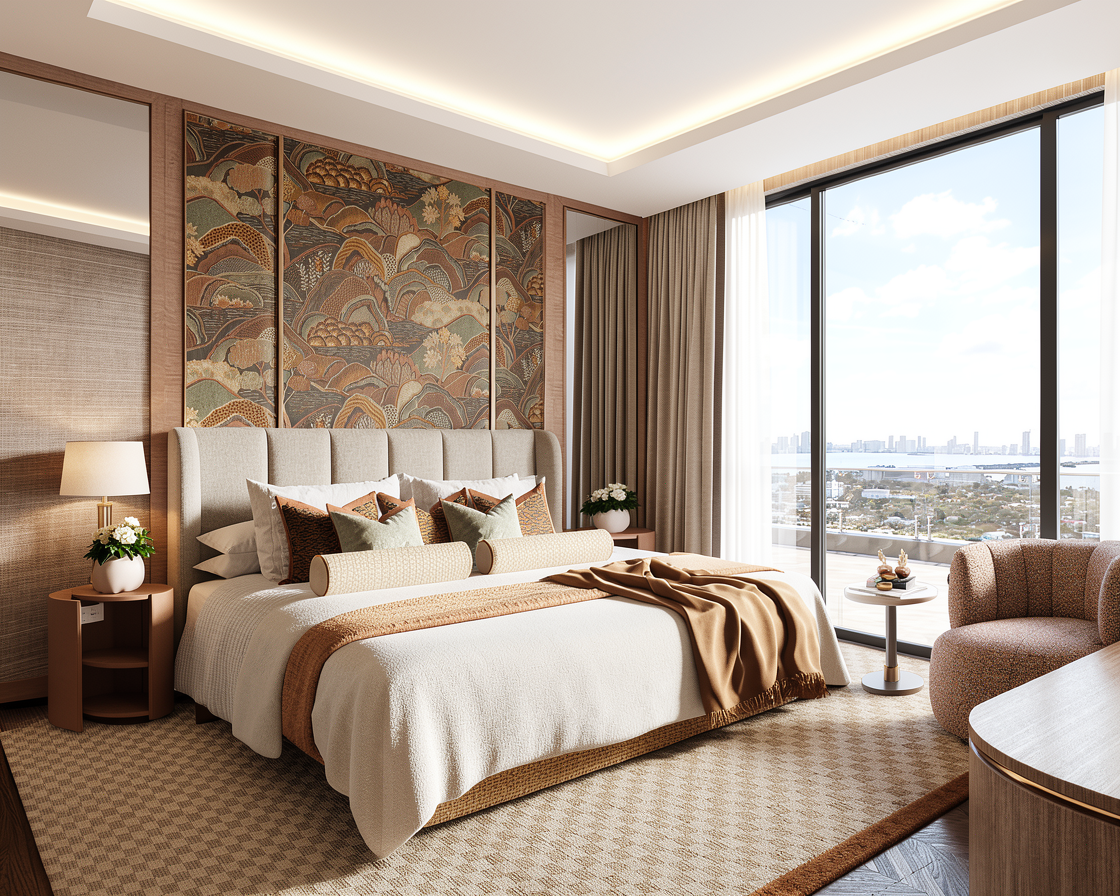 minimalist single person bedroom accesirues wall paper drawer on desk carpet on floor