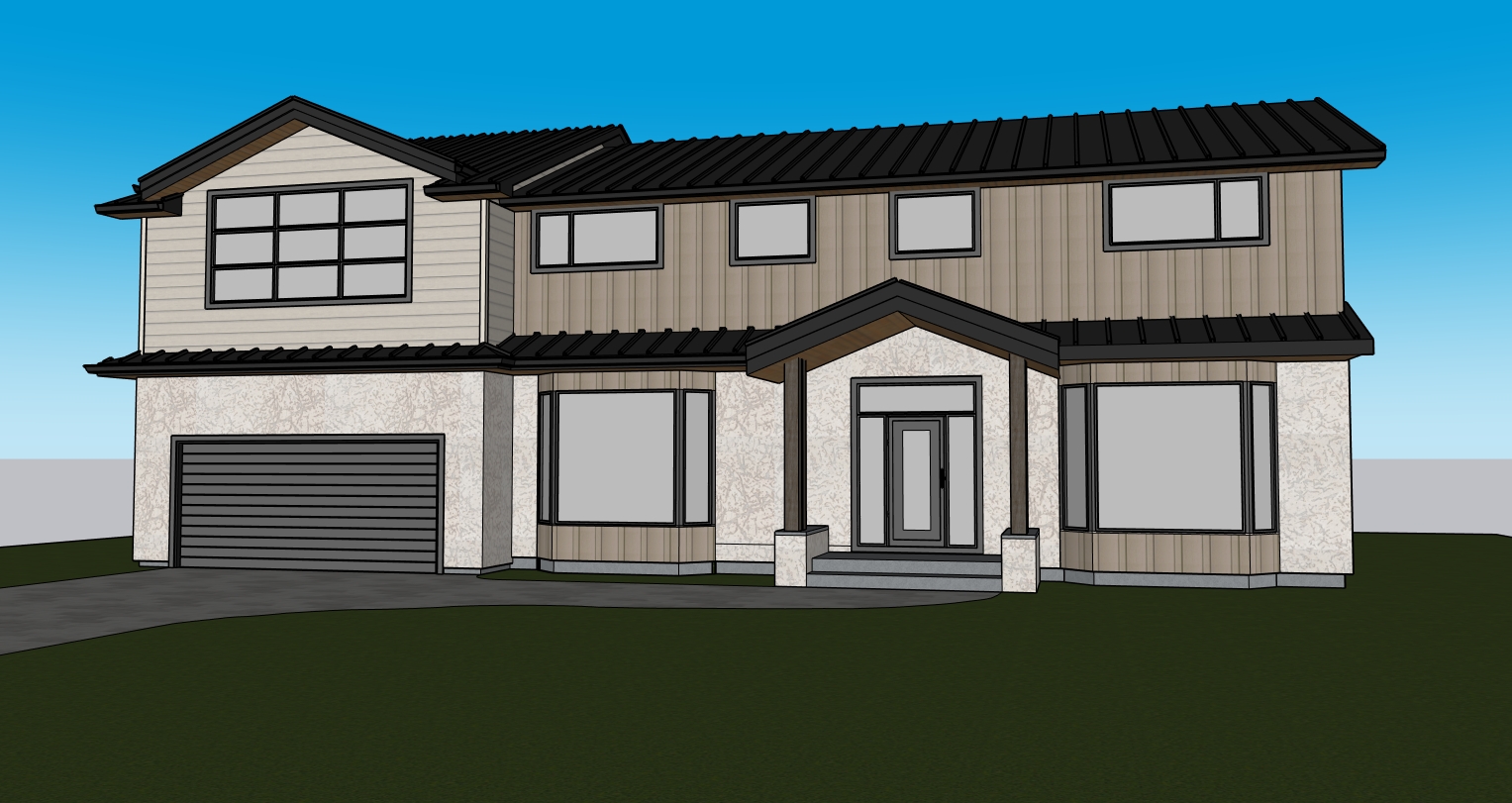 match colours precisely as shown add a mature cherry blossom treee to foreground on right hand side of image house is in a mature urban residential higher income neighbourhood