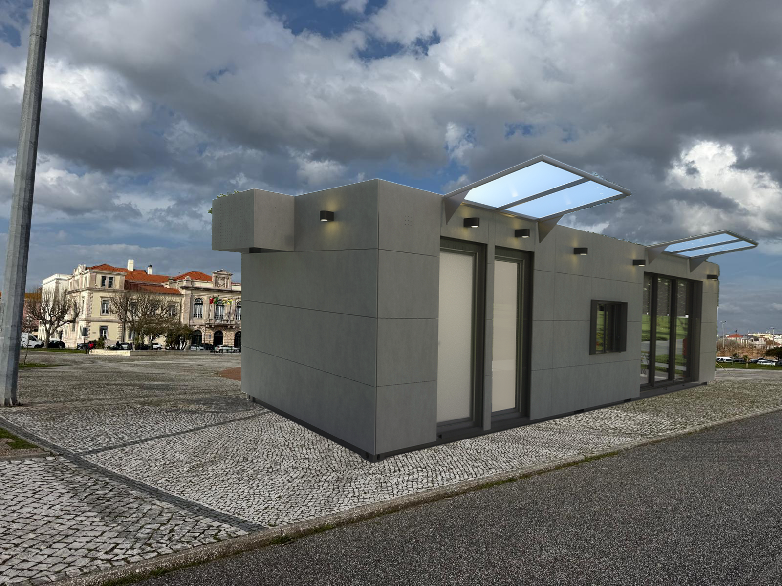 corrige a perspetiva do contentor e mete uma esplanada apenas do lado direito frente do contentor