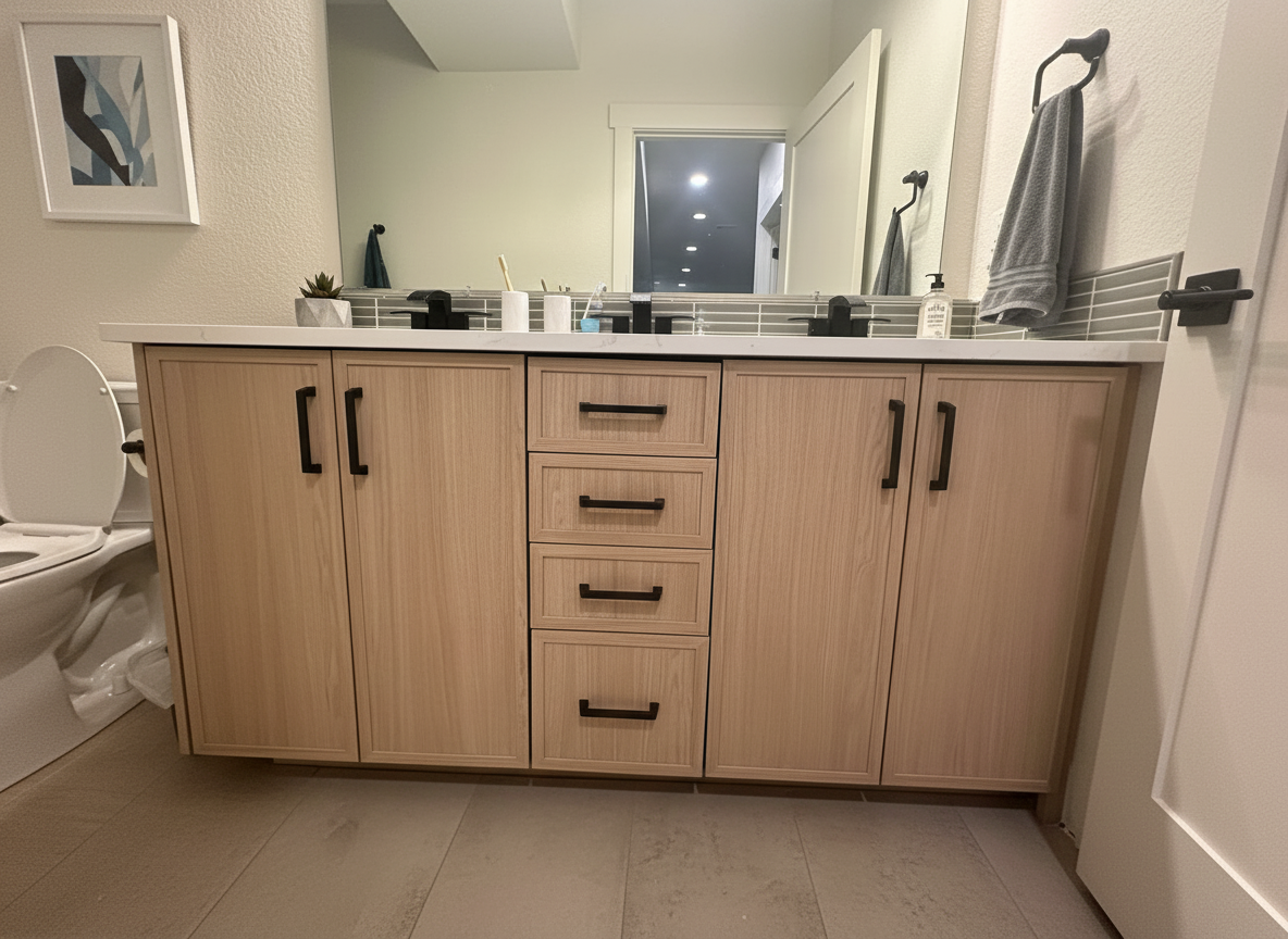 add natural lighting remove the glare on the tv remove all items on the countertop and shelves restage the countertop and shelves for a bar remove the glare from the lights clean up the floor get rid of the plastic tub in the left corner of the photo