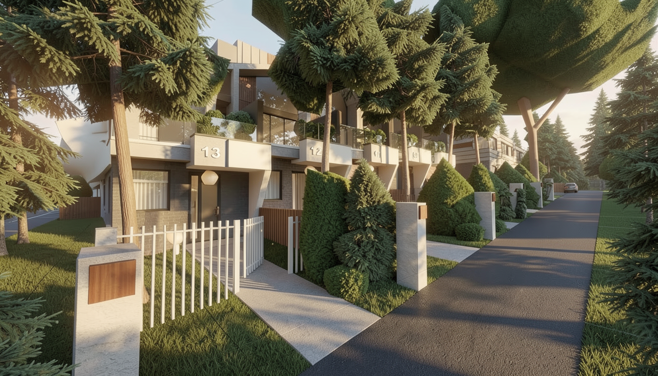 a manicured lawn layered flower beds low maintenance shrubs native plants stone pathway leading to the entrance