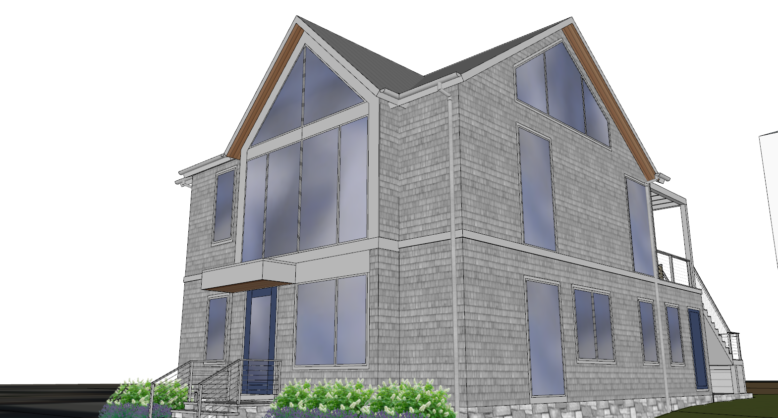 this is a beach house in rehoboth maryland you can t see the ocean in the image can you enhance the landscaping with grasses and sand native to rehoboth all trim is light grey
