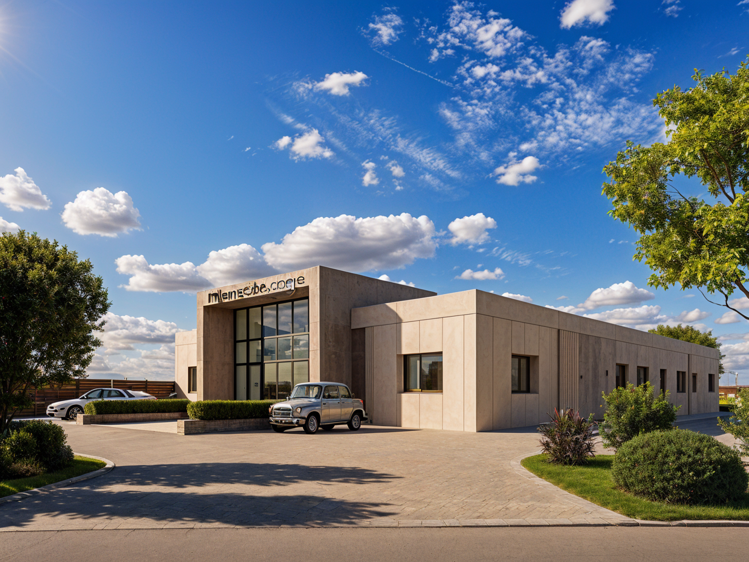 make more realistic that exterior rendering of a medical building beautiful sky with clouds write cabinet dentaire in the front fa ade
