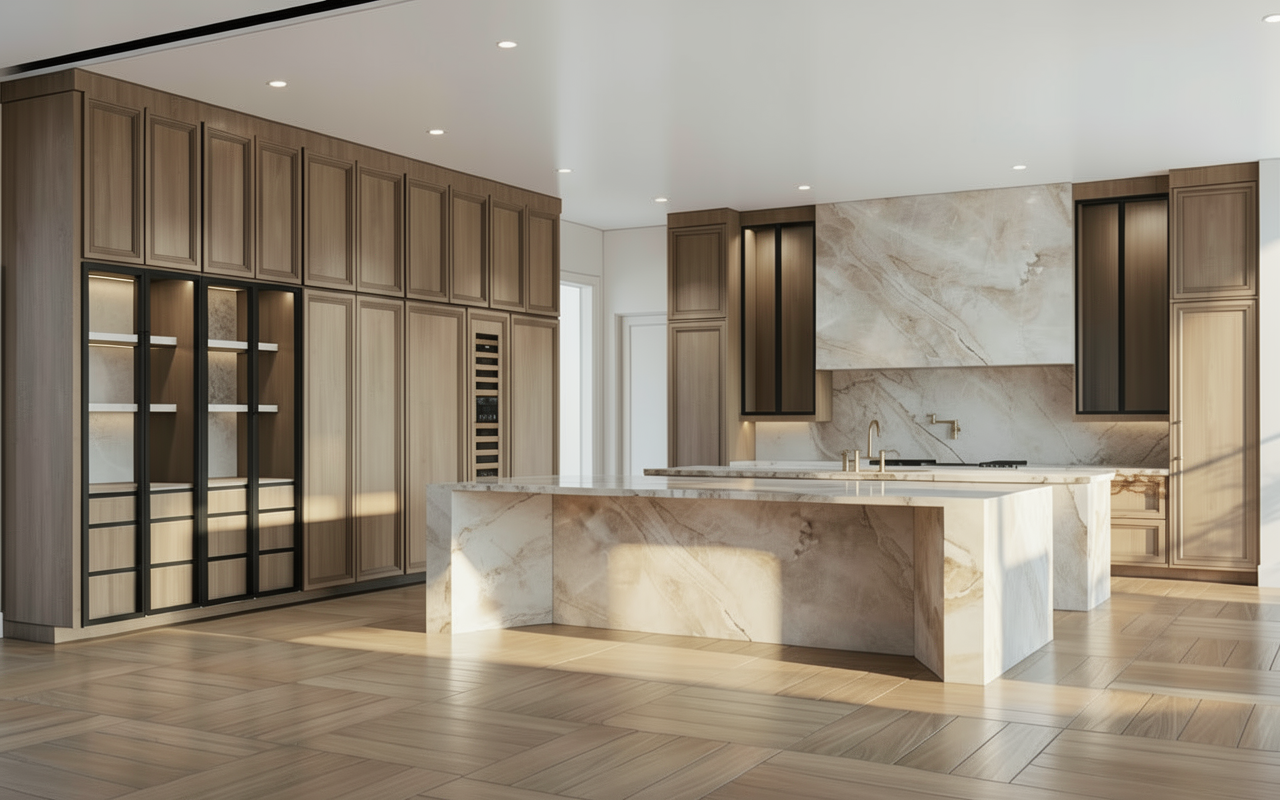 orange and blue cabins painted clapboard siding metal siding at forests edge colorado landscape snow on ground dusk with warm interior lighting snowy path to front decks large moose in front yard looking at camera