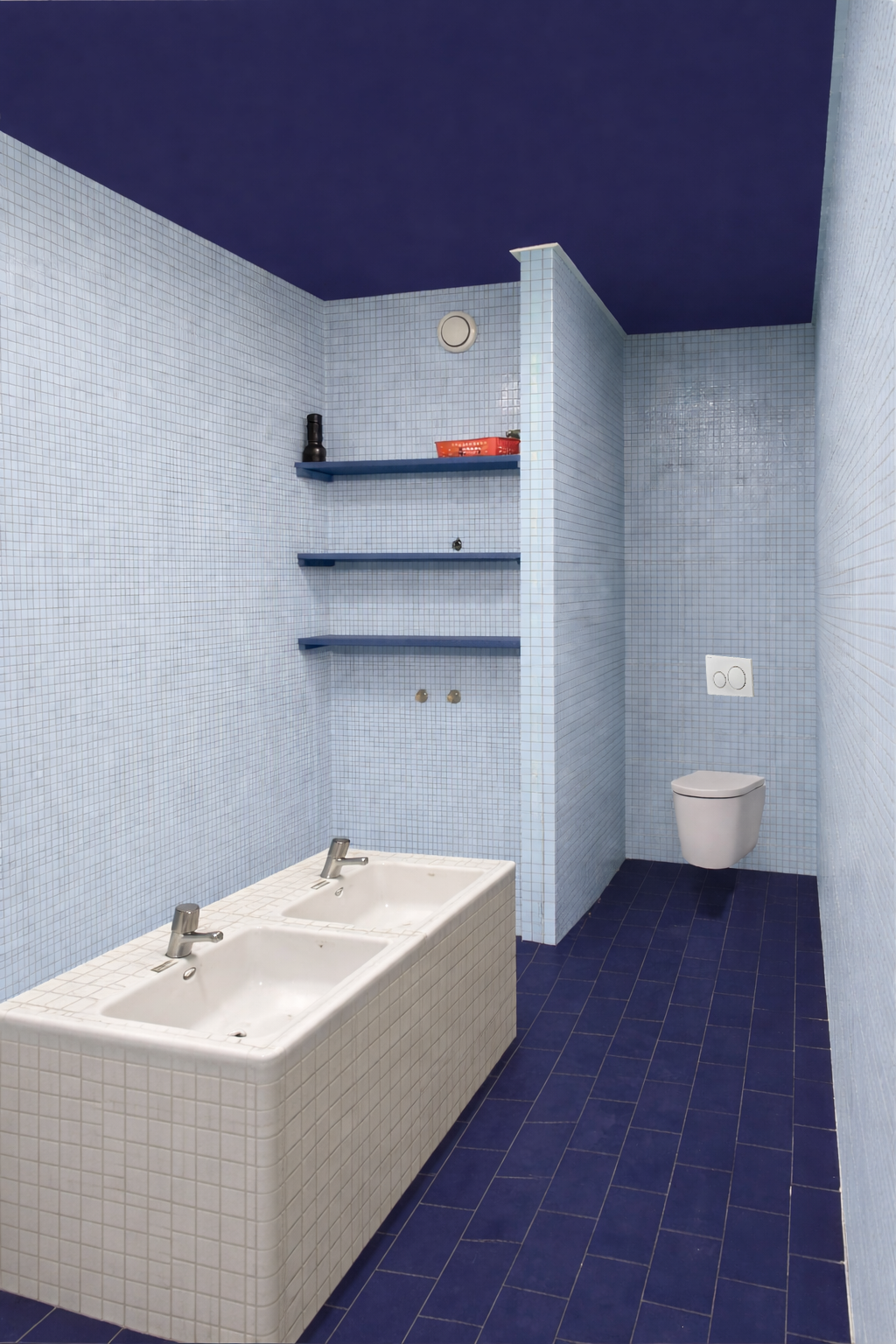 est ce que tu peux me changer juste le truc pour la chasse d eau en geberit blanc les mosaiques bleues claire peux tu faire un rendu style pate de verre le reste reste tel quel